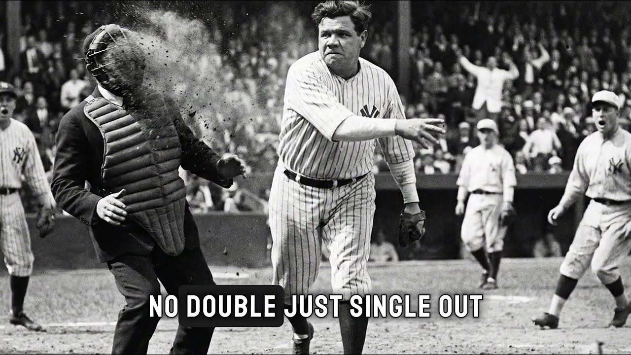 Out, arms spreading, signal clear. Ruth out at second. No double, just single. Out trying for extra base. Ruth jumping up immediately. Not accepting, not agreeing, not believing. Safe. I was safe. Hildebrand shaking head. You’re out. Calls made. Get off field. Ruth approaching. Closer. Oh, too close. Invading space. Breaking rules about umpire. Contact. Distance.