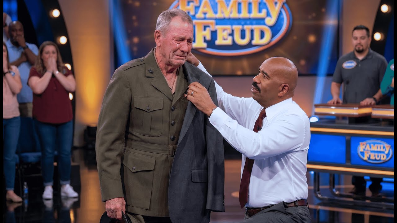 These unscripted exchanges had become legendary among family feud fans who treasured the host’s ability to connect with regular people and find humor in everyday situations. But when the elderly man turned toward the stage, something in his expression, in the way he carried himself, in the unmistakable weight of pain that was clearly visible even from the stage distance, made Steve’s performer smile falter slightly.
