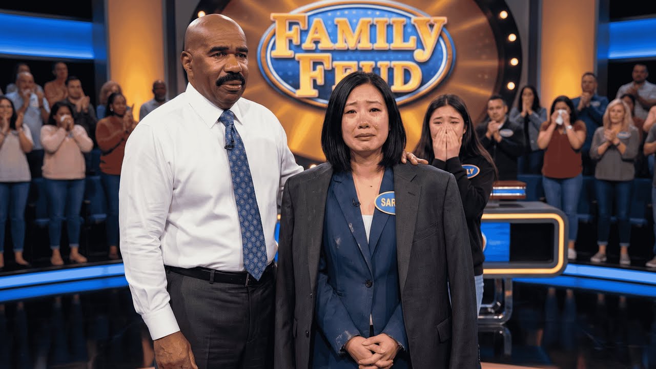 He looked at Sarah standing at her family’s podium, composed and dignified despite everything she had just shared. And then he did something absolutely unprecedented in the history of family feud. Instead of jumping back into the game with his usual energy and humor, instead of pretending that the commercial break had been just another routine pause in the action, Steve Harvey addressed the studio audience directly.