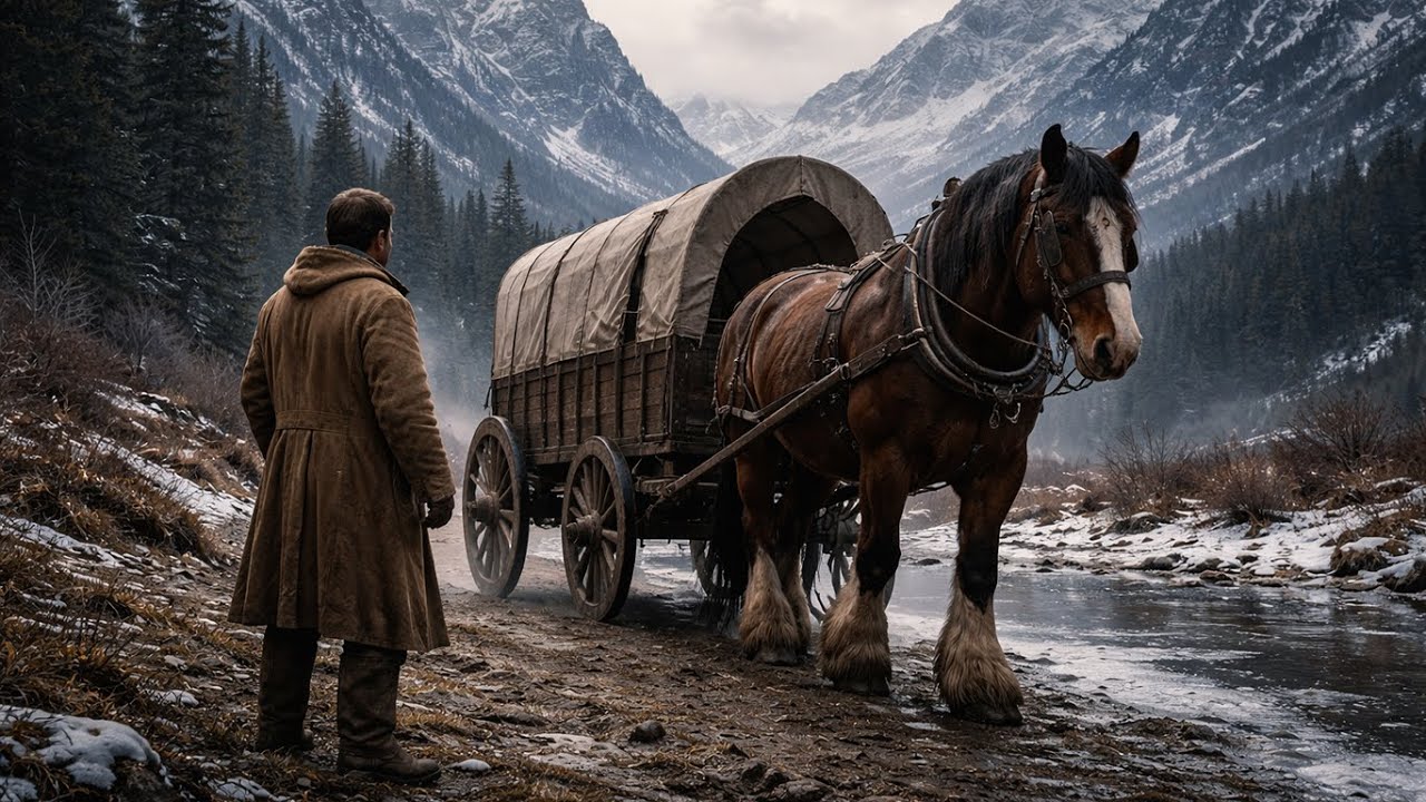 When Jake Mitchell lifted his rifle toward the massive shadow, moving through the freezing mist, he believed he was defending what little he had left. He had no idea he was aiming at the one thing that could still save it. Out of the gray fog came a giant horse, exhausted and foaming, dragging a rotting wagon with a wild, desperate purpose.