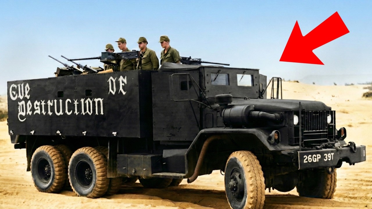 Fort Eustace, Virginia. Inside a climate controlled museum gallery, there is a truck that should not exist. It is painted flat black. The name on its side is written in jagged white Gothic letters with a red shadow underneath. Four Browning M2 heavy machine guns point outward from a doublewalled steel box that was never designed, never approved, and never issued by any procurement office in the United States Army. The welds are rough.