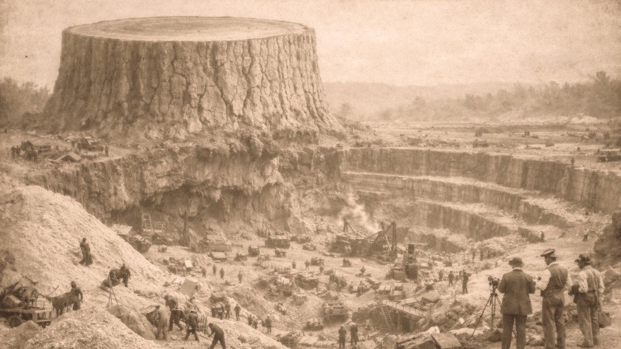 Within six months they had removed the entire top of the mountain.  Where a 3,000-foot peak once stood, there was now a flat plateau covered in shattered rock and coal dust.  The coal seam underneath had been exposed and excavated.  150,000 tonnes extracted in half a year.  The mountain was gone.  In its place was the first modern strip mine canyon.