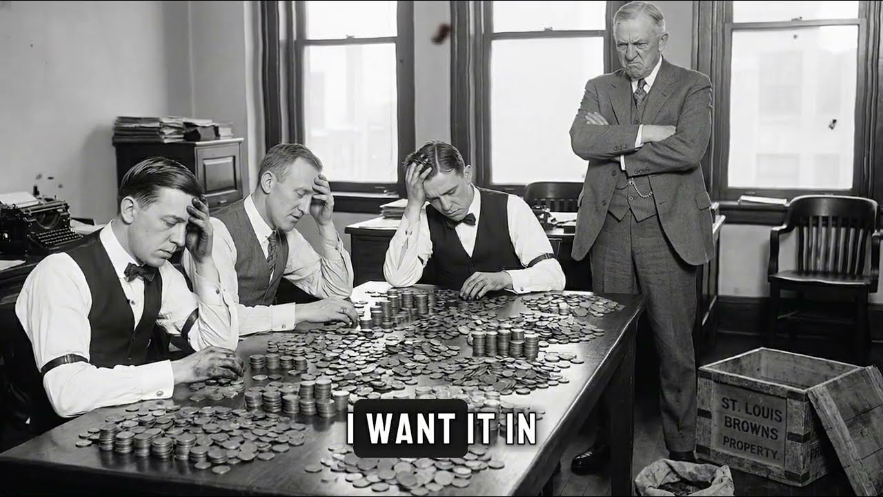 Day two. Five people counting now. Fingers stained brown. Office smells of copper. After 8 hours, 6,500 pennies total. $65. Johnson checks every hour. Each time angrier. This is humiliation. Cobb is humiliating the league office. Day three. Wednesday. Final push. Close by noon, 9,000 pennies. By 2 p.m., 9,800 pennies. By 3:30 p.m., 10,000 pennies.