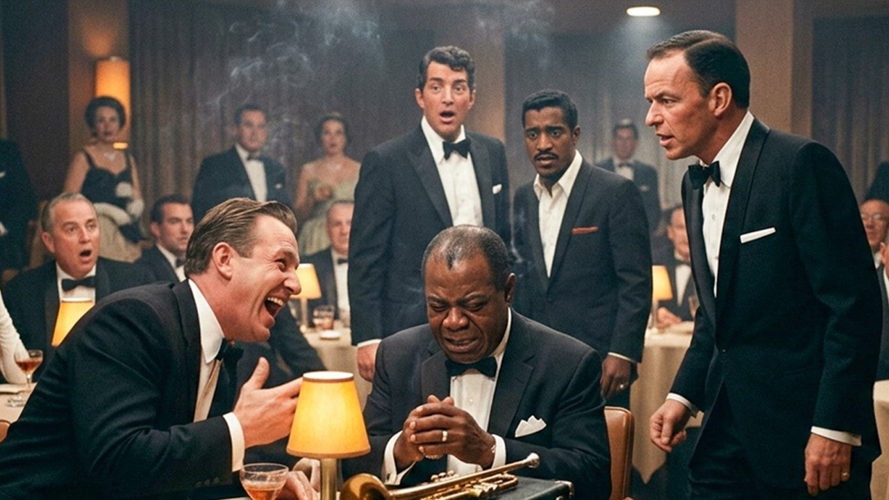 February 1959, the Sans Hotel, Las Vegas. Frank Sinatra, Dean Martin, Sammy Davis Jr., and Louisie Armstrong were in the same room. A private salon, host show, 50 plus people, invitation only. A man stood up at the center of the room, turned to Armstrong, and said something that froze every person in that space.