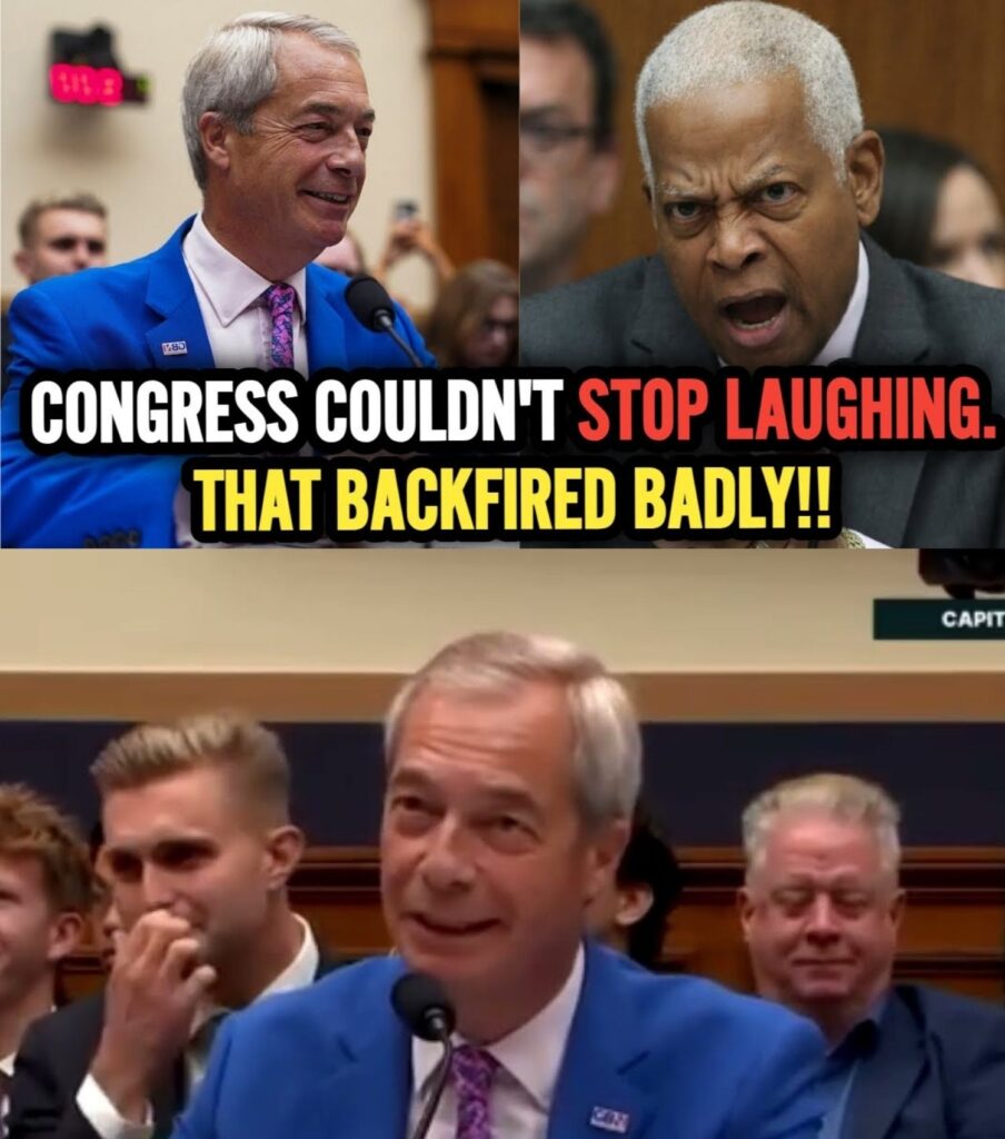It was supposed to be a serious political discussion, the kind of formal exchange that fills congressional calendars and rarely escapes the walls of Washington. Instead, it turned into one of the most unexpectedly humiliating moments of the session—one that left lawmakers laughing openly, aides scrambling to maintain decorum, and a seasoned Democratic congressman visibly flustered. When Nigel Farage stepped into the room, few anticipated that his presence would trigger a moment so sharp, so unfiltered, that Congress itself would momentarily lose control.