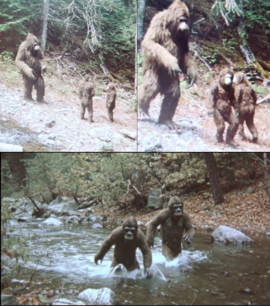 As I continued to observe, I noticed something remarkable. A deer wandered down to the stream, pausing to drink. Instead of fleeing, it remained calm, as if sensing that the Bigfoot family posed no threat. Moments later, a black bear appeared on the opposite bank, only to retreat when the male Bigfoot let out a deep, rumbling sound. There was an unspoken understanding between the creatures of the forest, a mutual respect that transcended species.