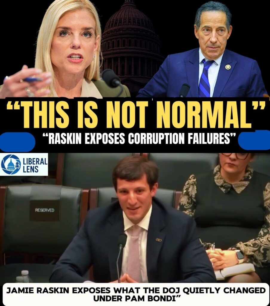 For months, Washington insiders sensed something was wrong, even if no one could immediately point to a single headline or scandal that explained it. Legal language coming out of the Department of Justice began to subtly shift. Enforcement priorities appeared to drift without explanation. High-profile cases slowed down not with dramatic announcements, but with procedural delays that were almost invisible to the public eye. To most Americans, nothing seemed to have changed. But to Congressman Jamie Raskin, a veteran constitutional lawyer and one of the sharpest legal minds in Congress, the silence itself was the warning sign. And when he finally decided to expose what had quietly changed under Attorney General Pam Bondi, the implications sent shockwaves far beyond the hearing room.