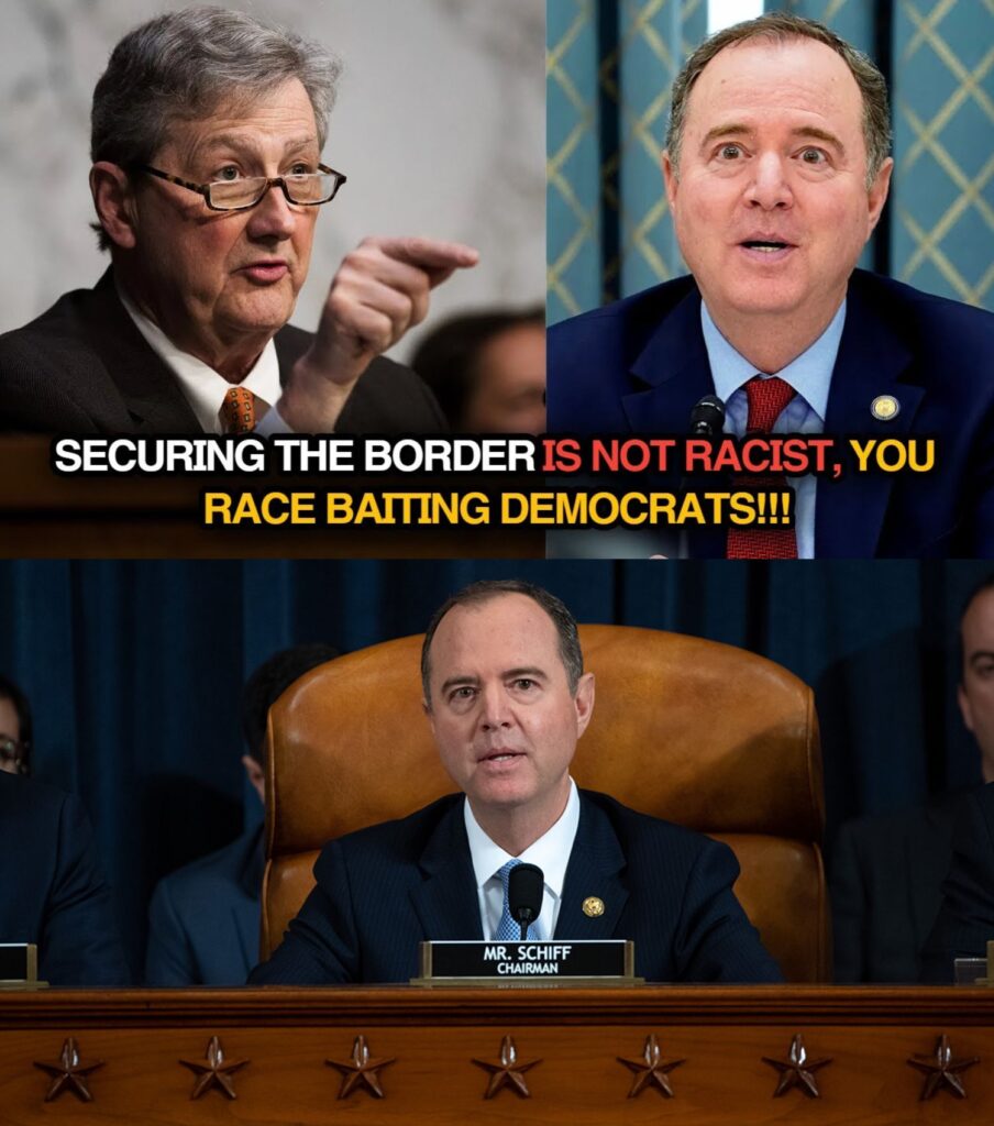 From the moment Senator John Kennedy walked into the Homeland Security hearing room, the air shifted with a tension so sharp it felt like static crawling across the walls. He wasn’t smiling. He wasn’t performing. He wasn’t delivering his usual Southern charm humor that disarms even his toughest opponents. Instead, Kennedy looked like a man who had run out of patience — and today, the person standing directly in his crosshairs was Adam Schiff, flanked by several Democratic members who had spent weeks using race-based rhetoric to blame their failures on border enforcement rather than their own policies. It was a strategy that had played well on cable news segments and Twitter clips, but in this hearing room — under oath, under scrutiny, under Kennedy’s unblinking stare — that strategy collapsed like a brittle paper shield.