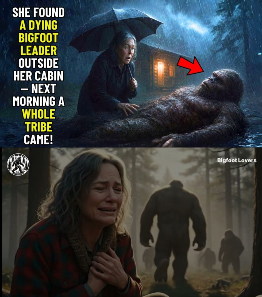 By the time she finished, the bleeding had slowed, and the young one’s breathing had steadied. Its eyes slipped half-closed, not with death this time, but with exhaustion. Two of the larger Bigfoot slipped their arms beneath it, lifting it with the gentleness of parents carrying a sleeping child.