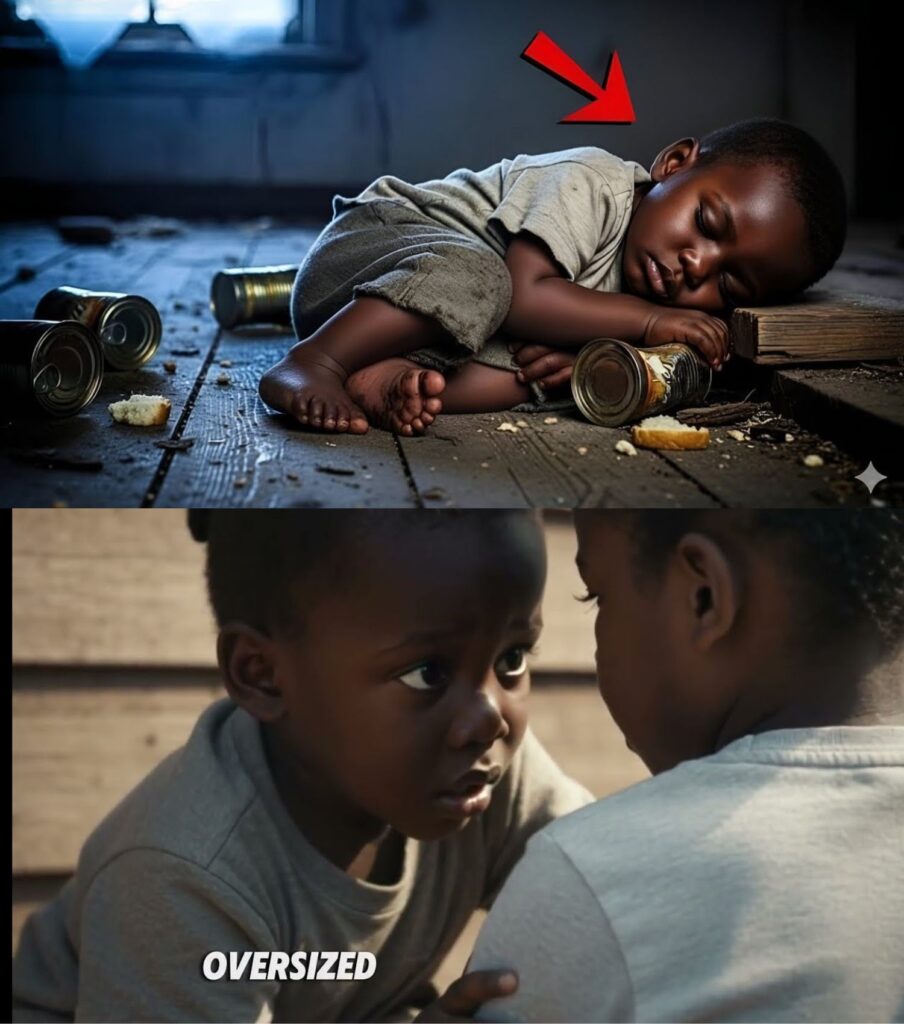 In the midst of this decay, a tiny boy lay curled on the cold floor, barefoot, wearing the same oversized gray t-shirt and rough shorts he had worn for weeks. His little chest rose and fell shallowly, his arm wrapped around an empty can as if it were a cherished toy. Cairo didn’t sleep deeply; he never did. Even at three years old, he slept like someone far older, someone who had already seen too much. Every creak made his body stiffen, every bird cry made him twitch, and every gust of wind made him clutch whatever was closest, usually a piece of wood or a can.
