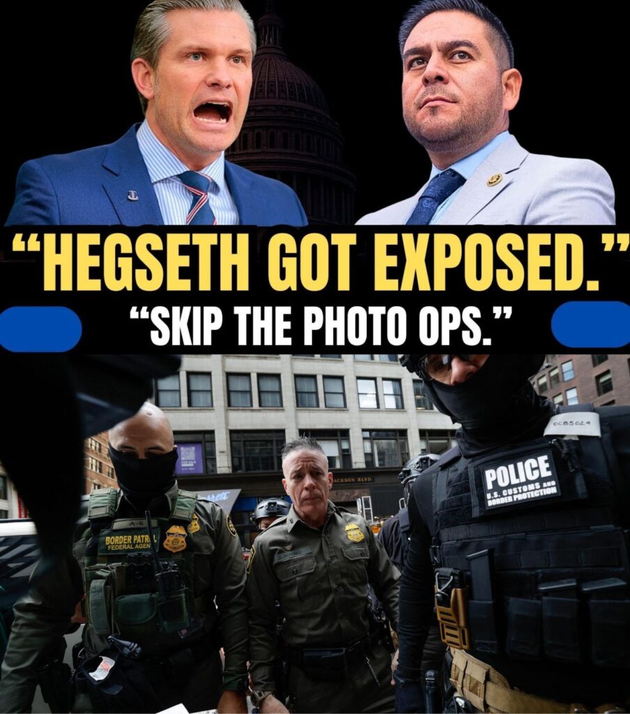 Hegseth attempted to pivot, launching into a long speech about “border chaos,” “American communities under siege,” and “historic levels of crisis.” His voice swelled, his gestures expanded — his usual TV swagger. But Vasquez didn’t flinch. In fact, she didn’t even look at him during his rant. She read through a document calmly, letting him exhaust his theatrics. And then, as soon as he paused for breath, she delivered her first precision strike.