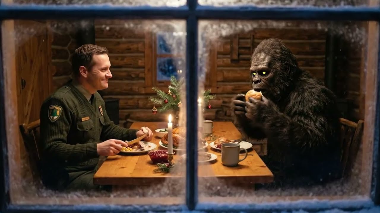 This is the story of Marcus Webb—a ranger who sat down to Christmas dinner with someone who shouldn’t exist. Across the table, massive hands reached for a plate of food. Hands covered in dark fur. Hands that belonged to a creature the world calls a myth. But Marcus knew the truth. He raised this creature from the edge of death, fed him, taught him, loved him like a son. For twelve years, they lived together in secret, sharing meals, sharing stories, sharing a bond that defied nature itself. And what this beast did when Marcus was dying would shock a young ranger so deeply he’d keep the secret for the rest of his life.