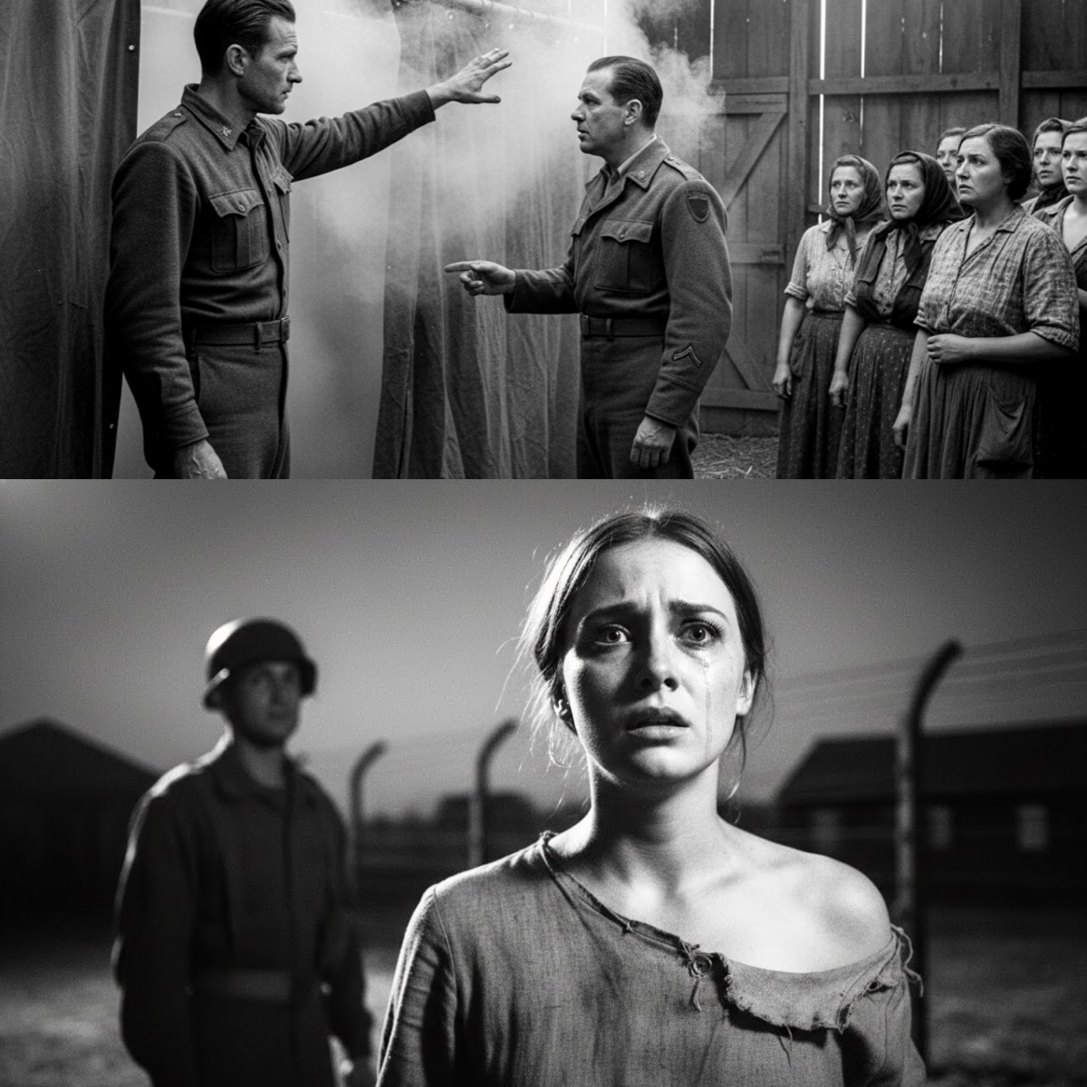 Just as the chaos reached its crescendo, the canvas curtain was ripped aside. Captain Davis, a company commander who had been in Europe since Normandy, stepped into the room. He took in the scene—the weeping women, the panicked guards, the sergeant’s hand on his holster—and recognized the specific scent of this brand of terror.