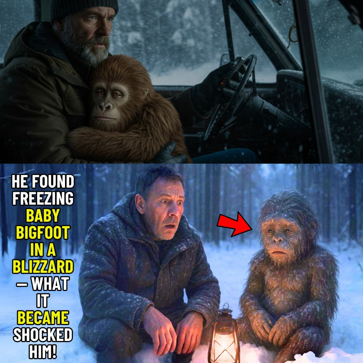 The “Baby Bigfoot” was malnourished and exhausted. Elias spent the first few hours transferring warmth, rubbing its limbs, and offering sips of warm broth. To his surprise, the creature didn’t act with the wild panic of a trapped animal. It watched him with a deep, observant intelligence. When Elias spoke, it tilted its head, processing the tone of his voice.