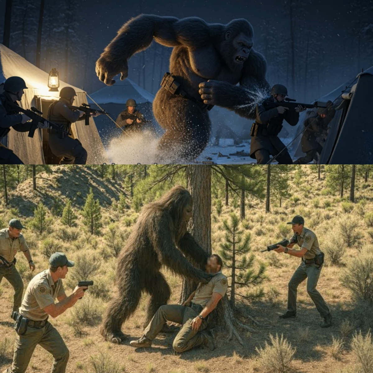 A massive male Bigfoot closed thirty yards in three seconds. Holloway’s bear spray was blown off course by a sudden gust of wind. Dennis was slammed to the ground, the creature’s weight cracking his ribs instantly. Holloway fired a warning shot from a 12-gauge shotgun, the deafening blast distracting the creature just long enough for Dennis to roll into a defensive “ball.”