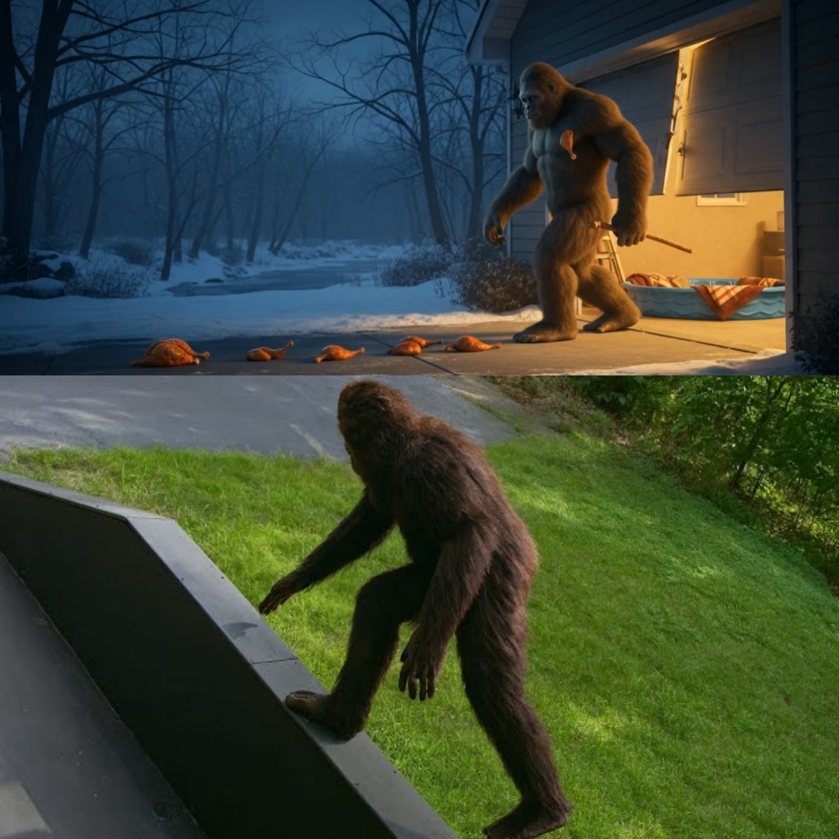 By the fourth night, I couldn’t sleep. I told Paul I was leaving the garage cracked open—just a foot. If the creature needed a dry place out of the wind, it would be there. Paul showed up with a bag of rotisserie chickens and a coil of paracord. We didn’t use the word “Bigfoot.” We talked about the cold snap and the ice on the creek instead.