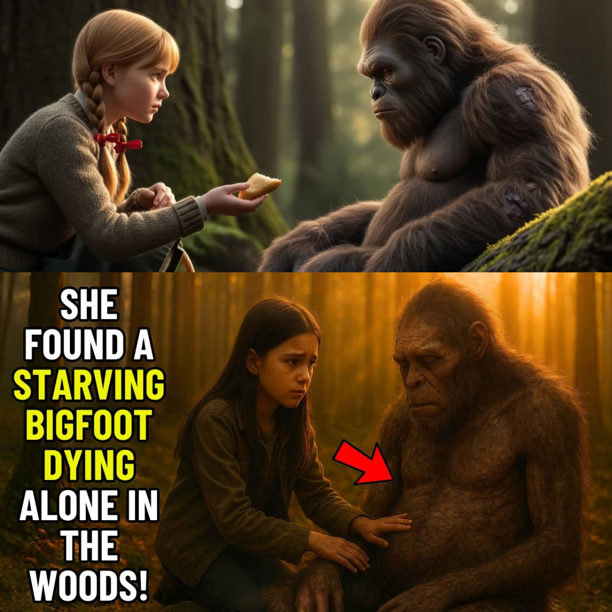 The creature let out a weak, rumbling growl, not of aggression, but of resignation. Silas stood torn, the weight of the rifle heavy in his hands. He looked at the creature’s ribs, at its gentle, human-like eyes, and then at his daughter’s tear-streaked face. In that moment, the “beast” of folklore was replaced by a dying father in the woods.
