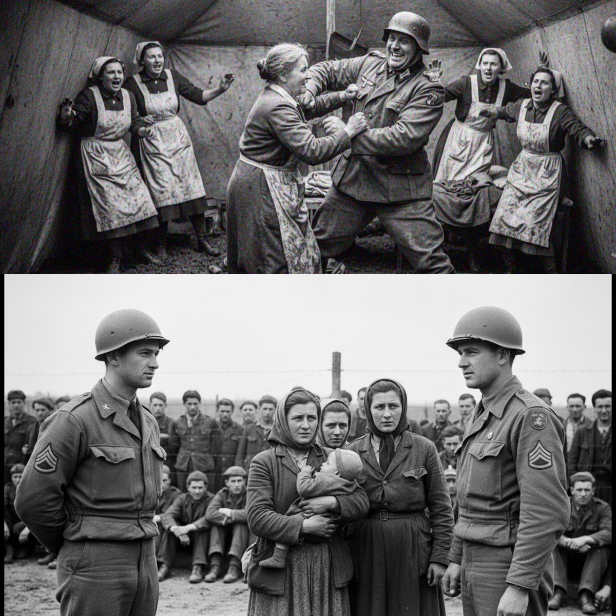 In the chaos of the mass surrender, the logistics of segregation had been overwhelmed. Ilsa and the other women were shoved into a mixed enclosure. Immediately, they became a spectacle. In the ordered world of the Wehrmacht, the Helferinnen were comrades protected by rank. Here, in the great leveling field of defeat, they were simply prey.