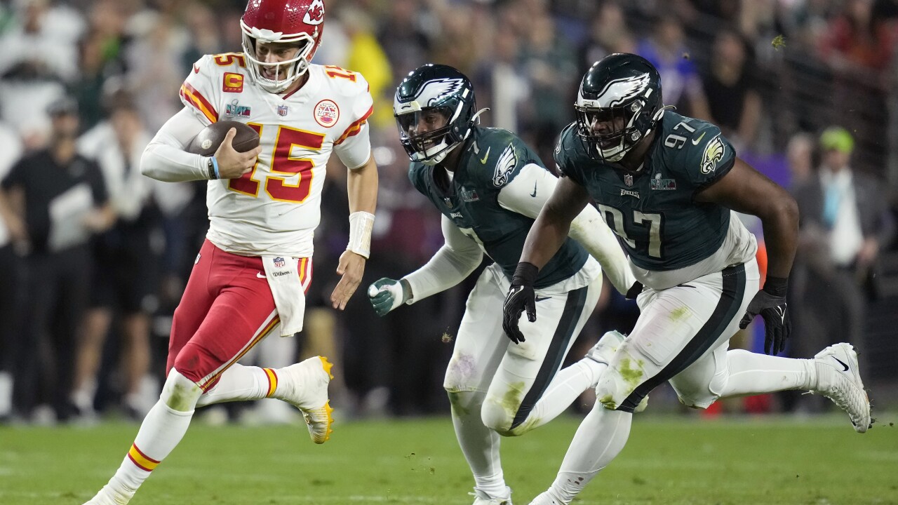 Philadelphia had taken a 10-0 lead and the two-time defending champs were on the ropes when Mahomes was sacked by Josh Sweat.