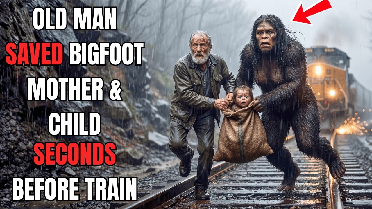 An Old Man Saved a Bigfoot Mother and Her Child — Moments Before the Train Arrived.