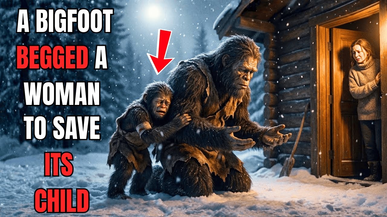 Bigfoot Knelt Before A Woman, Begging Her To Save Its Freezing Child