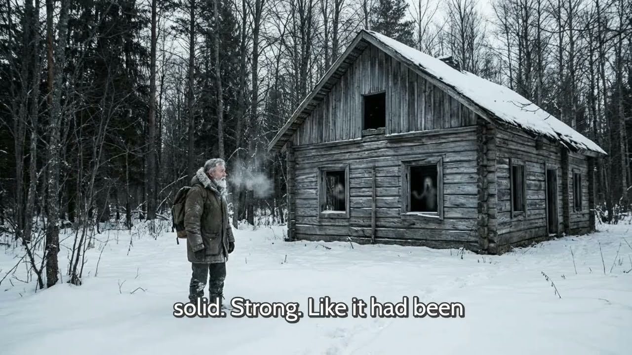 Henry’s throat tightened. He stepped into a clearing he’d never seen before. And there it stood—the house. Impossible. Undeniable. Real. A settler’s cabin built from hand-hewn logs gone silver with age. The wood was weathered smooth, grain raised by countless seasons. The roof sagged in the middle, shingles missing like broken teeth. The windows were dark but not empty. Something moved behind the glass—shadows that twisted wrong, bent at angles that didn’t match any light source.