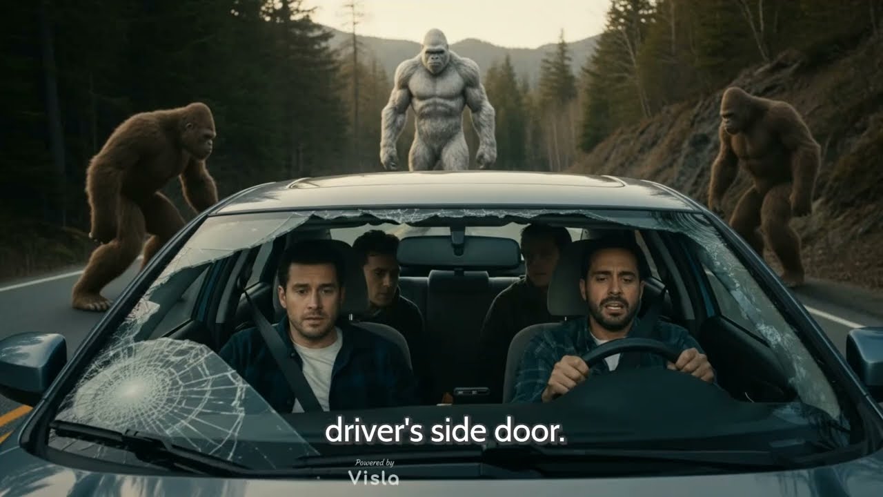The windshield exploded, showering them with cubes of glass. The creature reached through, fingers brushing Jake’s shirt. The smell was overwhelming — wet fur, decay, something primal.