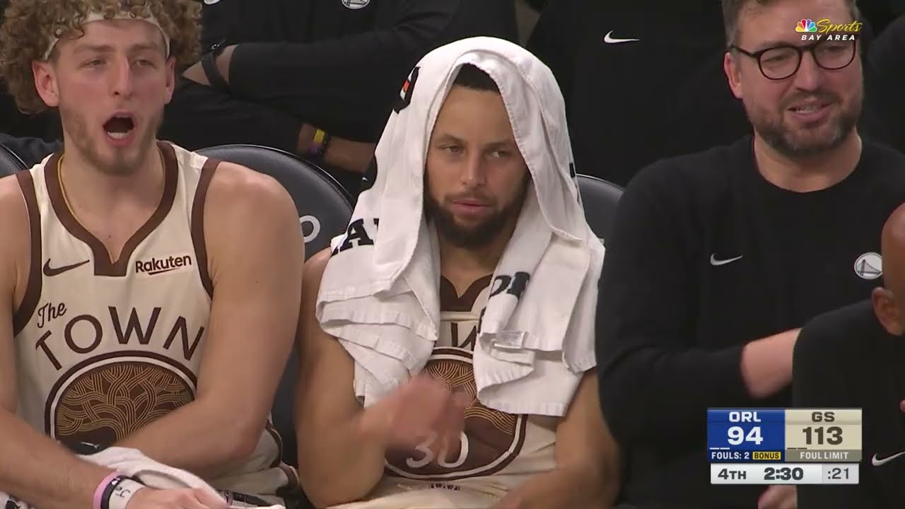 But as the distraction left the court, Steph Curry seized the moment. Struggling with his shot early (just 4-for-14), Curry suddenly erupted, knocking down eight points in less than 90 seconds. With the energy in Chase Center transformed, Curry danced after every bucket, igniting the crowd and his teammates.