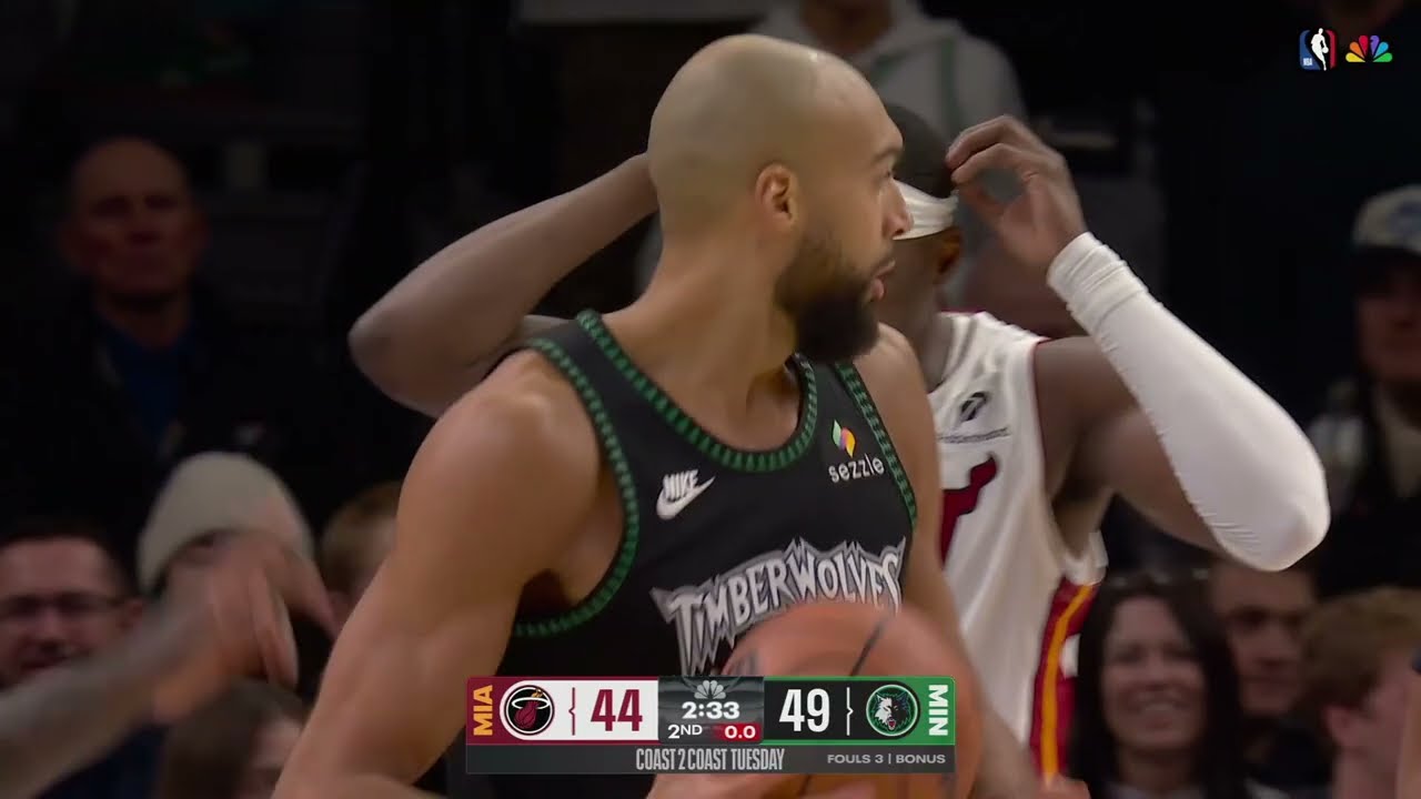 Because if you watch Minnesota closely, the pattern is unmistakable: Gobert is playing a defensive season that looks like peak Gobert, and the Wolves’ identity is built around it. Against Miami—tough, disciplined, and loaded with frontcourt strength—Gobert didn’t just “hold his own.” He monstered the game, repeatedly erasing drives, blowing up actions, and turning the Heat’s preferred mid-post and downhill options into awkward, rushed, low-quality attempts.