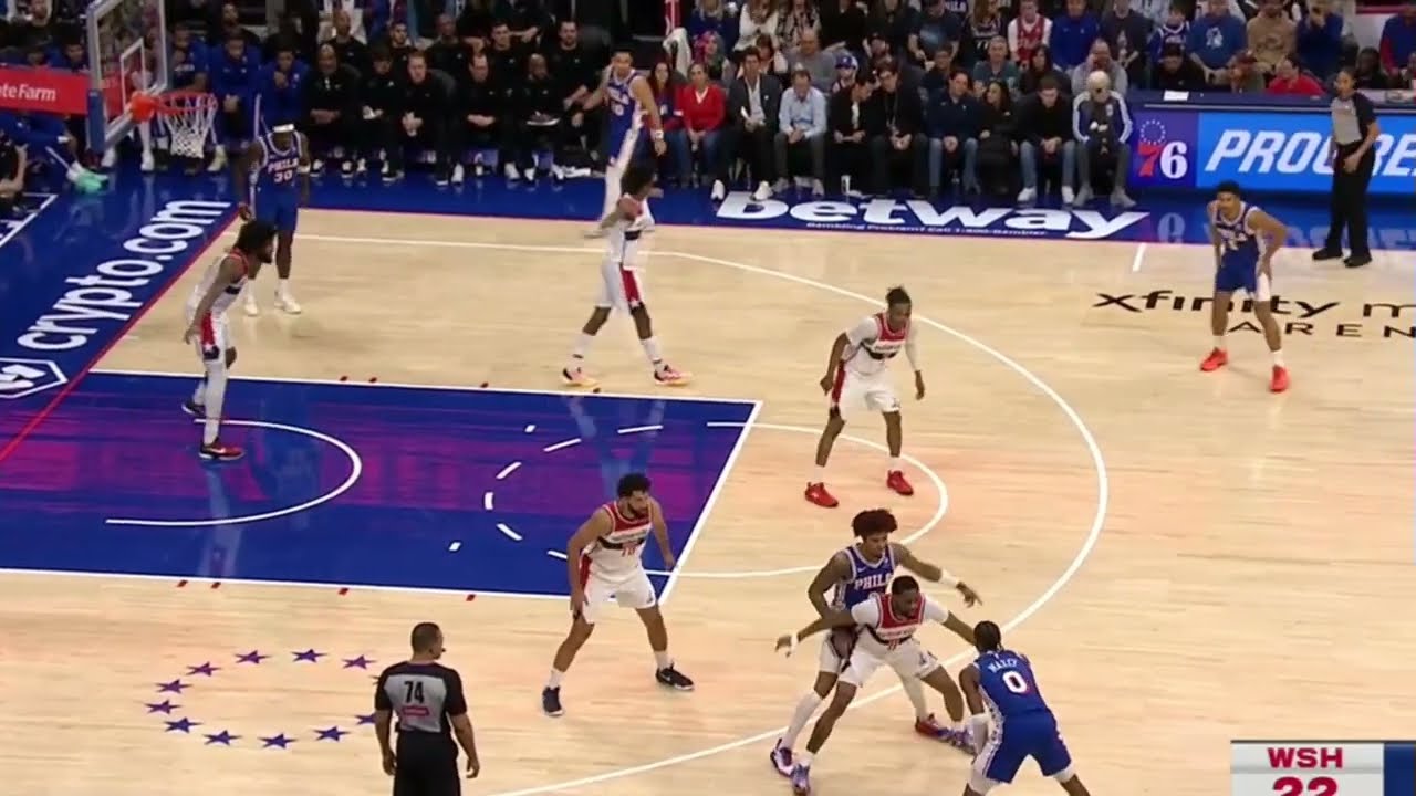 Despite the stars’ brilliance, the Sixers’ bench remains a question mark. Head coach Nick Nurse opted to rest Paul George and Joel Embiid first, leaving a three-guard lineup of Jeremy Kane, Quentin Grimes, and Tyrese Maxey to shoulder the load. For the second straight game against a struggling opponent, that trio failed to maintain the lead—at one point, Washington even seized control in the first half.