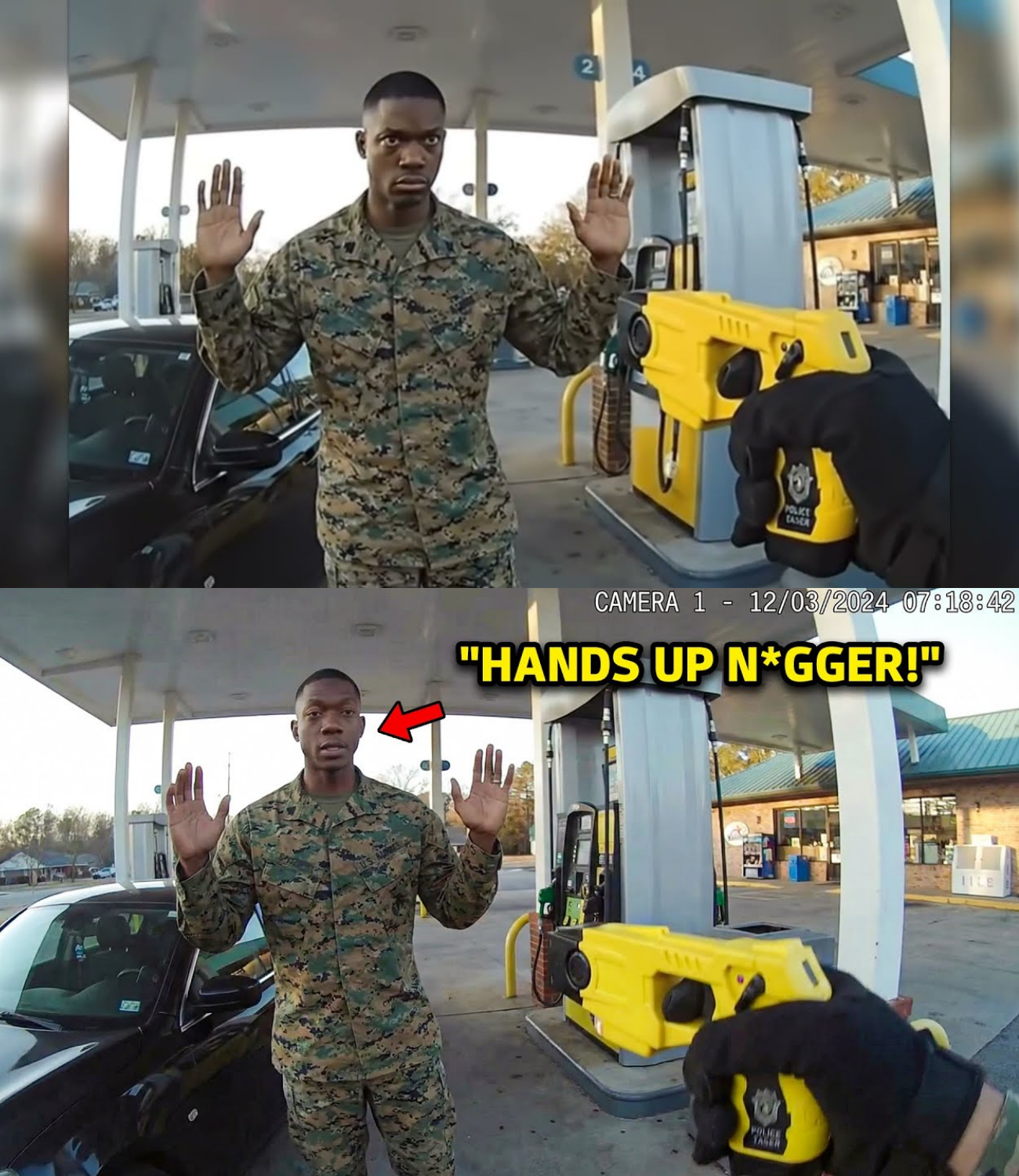 What began as a routine fuel stop ended with a decorated Delta Force commander lying face-down on concrete, convulsing under 50,000 volts of electricity—handcuffed, compliant, and wearing the uniform of the United States Army.