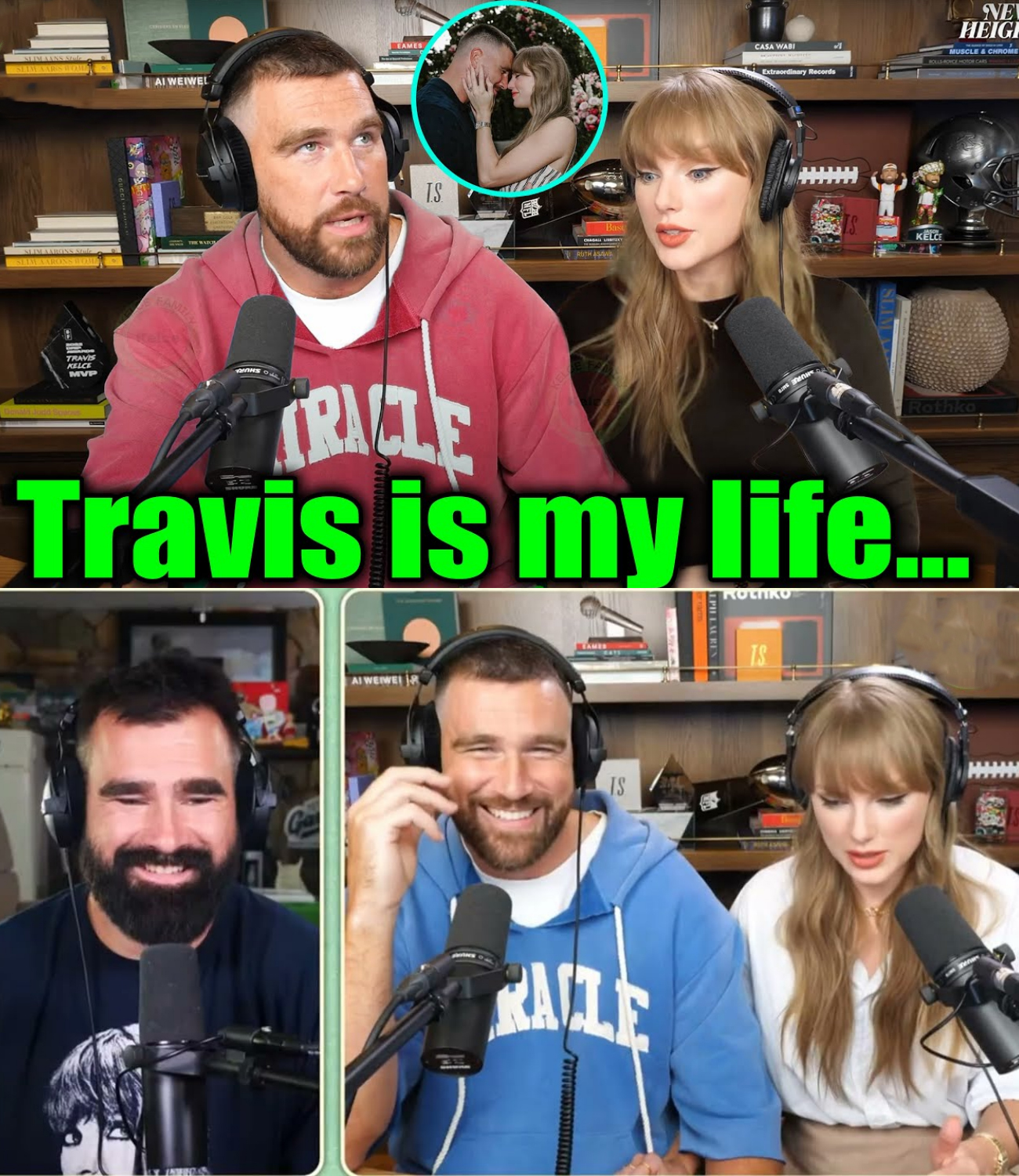 AUGUST 14, 2025 — The entertainment world exploded when Taylor Swift made her long-awaited debut on the New Heights podcast hosted by NFL stars Travis and Jason Kelce. But what she revealed went far beyond lighthearted talk — it was a revelation of love, chaos, and destiny, straight out of a Hollywood romance.