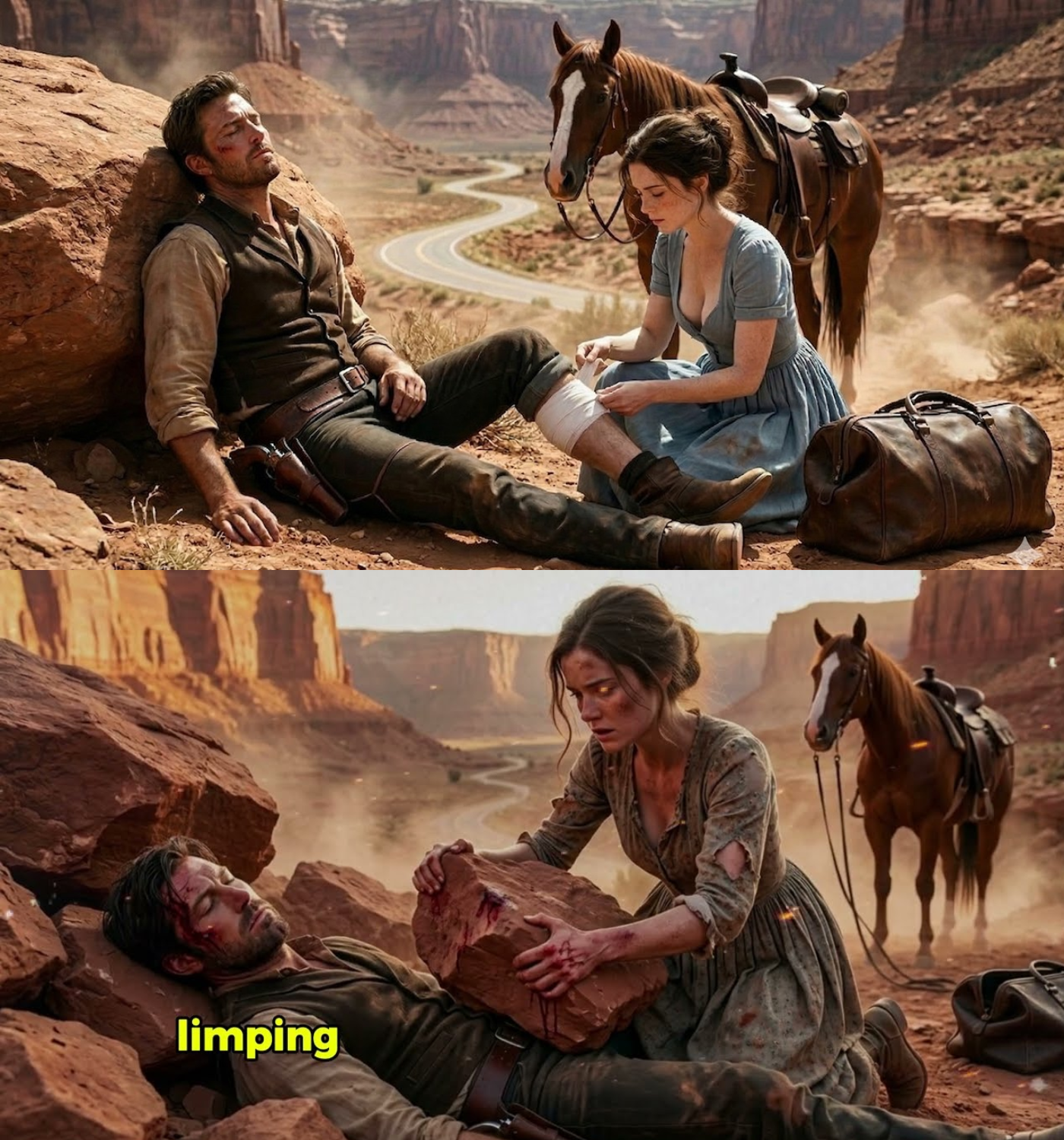 Clara rolled up her sleeves and began to clear the smaller rocks, her hands scraping raw. The larger slab resisted her efforts, but she pushed with all her strength until it finally shifted, freeing his leg. As he gasped for water, she realized he was alive. “There’s a cabin,” he murmured weakly. “Half mile. Follow the creek.” Then he went limp.