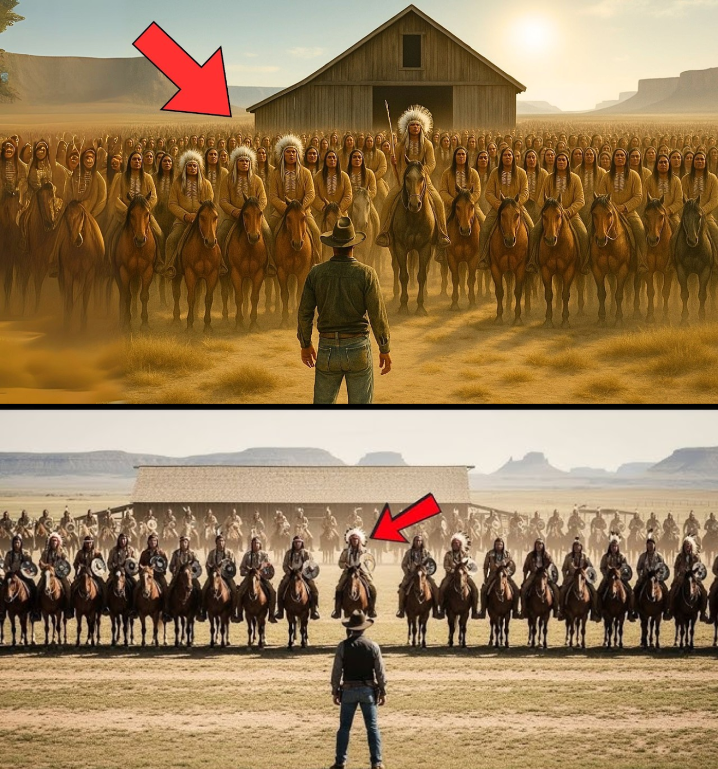 With no time left, Bear made the hardest decision of his life. He opened the cabin door, hands raised high, the girl following closely behind. The sight that greeted him was terrifying—200 Comanche warriors encircled his property, weapons drawn, their faces painted for war.