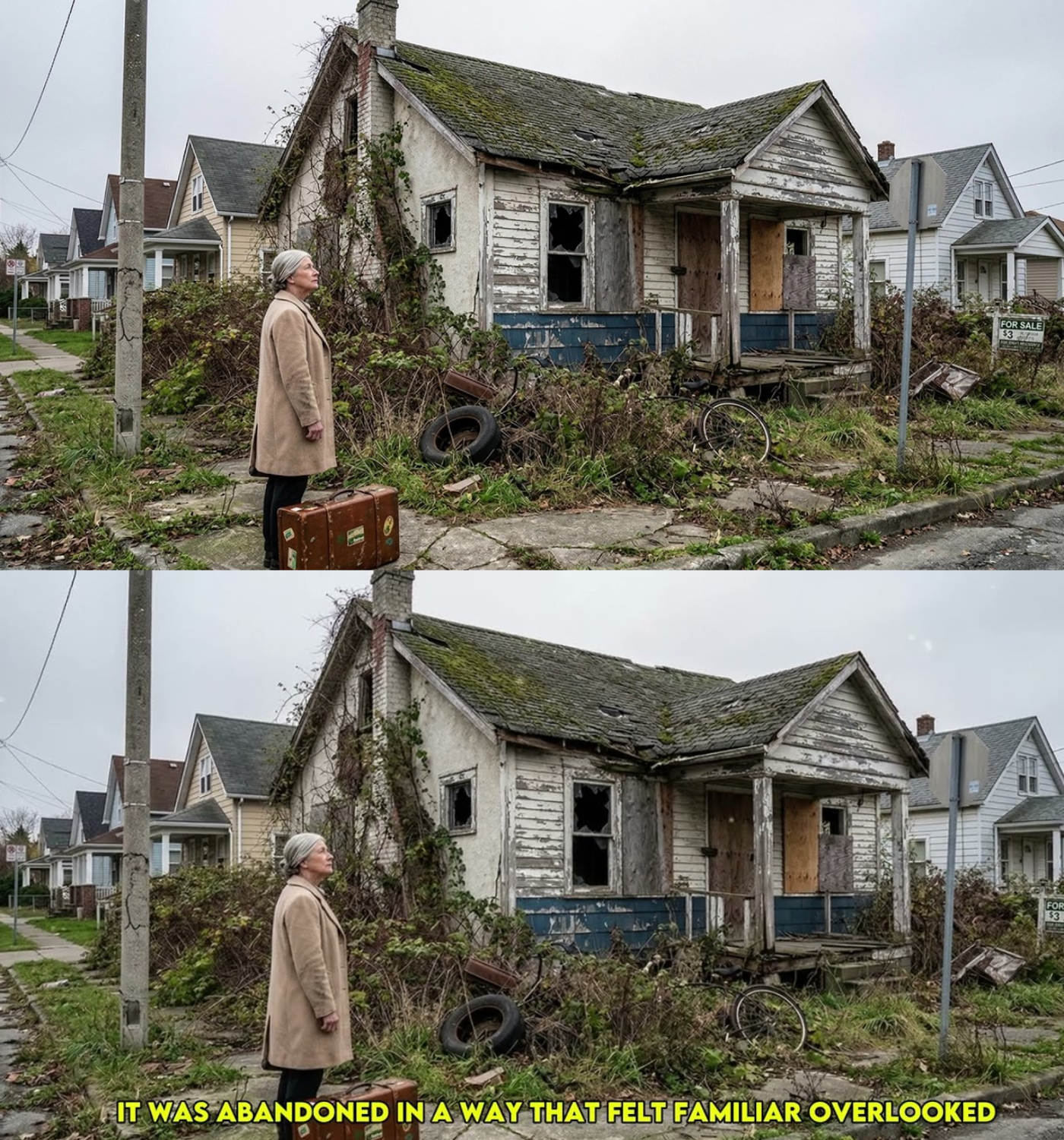 The address led her to a quiet street where the houses stood in varying states of care. When she finally saw it, she knew immediately it was the right place. The paint peeled in long strips, the windows were dark and broken, and the roof sagged as if it had grown tired of holding itself together. The yard was overgrown, making the house seem to be slowly disappearing into it.