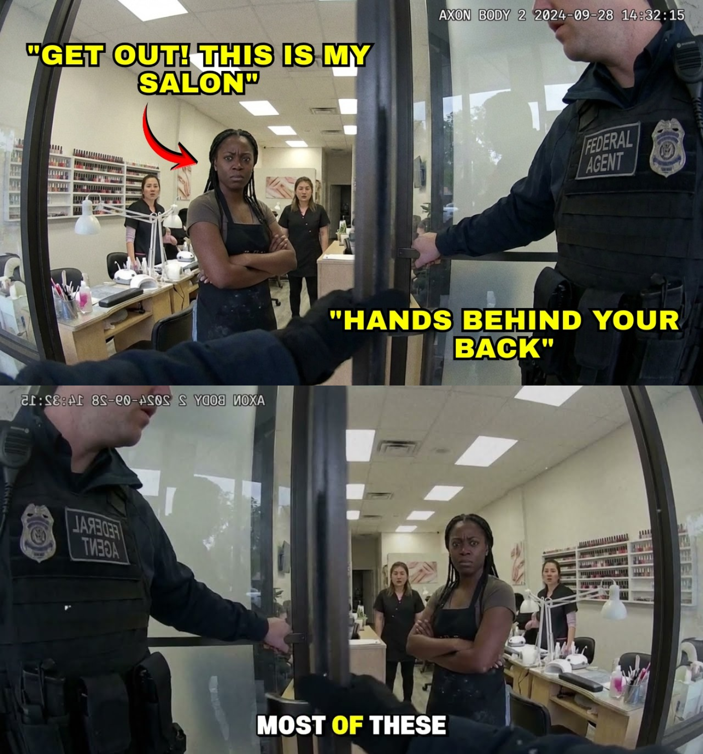 The agents, caught off guard by Martinez’s authority and legal knowledge, began to falter. The situation had spiraled beyond their control, and the video evidence captured by the salon’s security system would soon become a crucial part of the case against them.