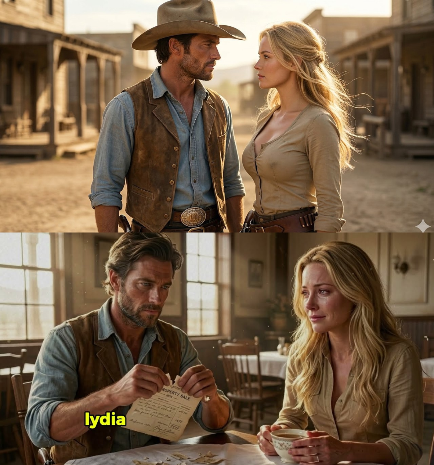 Heath nodded once, then turned to the auctioneer. “The paperwork.” Frank hurried to hand it over. Heath signed quickly, anger tightening his jaw as he folded the bill of sale and tucked it into his vest. “This way,” he said quietly. The walk to the hotel felt endless as townsfolk stared. Some whispered, some smirked. Lydia kept her eyes on the wooden sidewalk, fighting the crushing weight of humiliation.