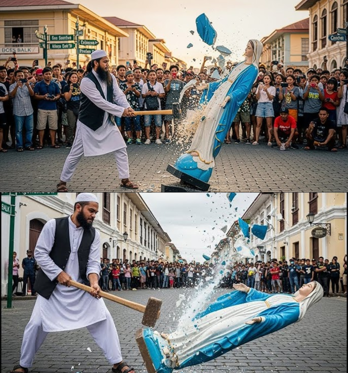 By dawn, the news of the statue’s destruction spread like wildfire through the village. The site was cordoned off as a crime scene, and cameras from Manila arrived to capture the story. Father Miguel Santos, the parish priest, addressed the crowd, urging calm and restraint. He emphasized that violence would only breed more violence. However, many in the Catholic community were enraged and spoke of retaliation.