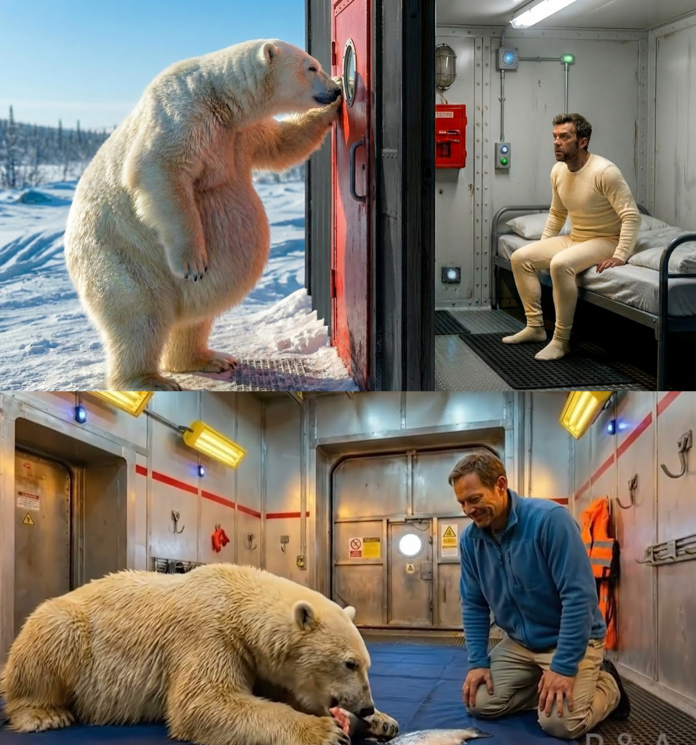 I was checking the thermometer on the station’s outer wall when movement caught my eye at the main entrance. Turning, I froze—a massive polar bear stood just a few meters from the bright red door. Her head was lowered, and her breath billowed in thick clouds of steam into the frosty air. In my two decades of working at polar stations, I had encountered hundreds of bears, but never had one approached so close, as if waiting for an invitation to enter.