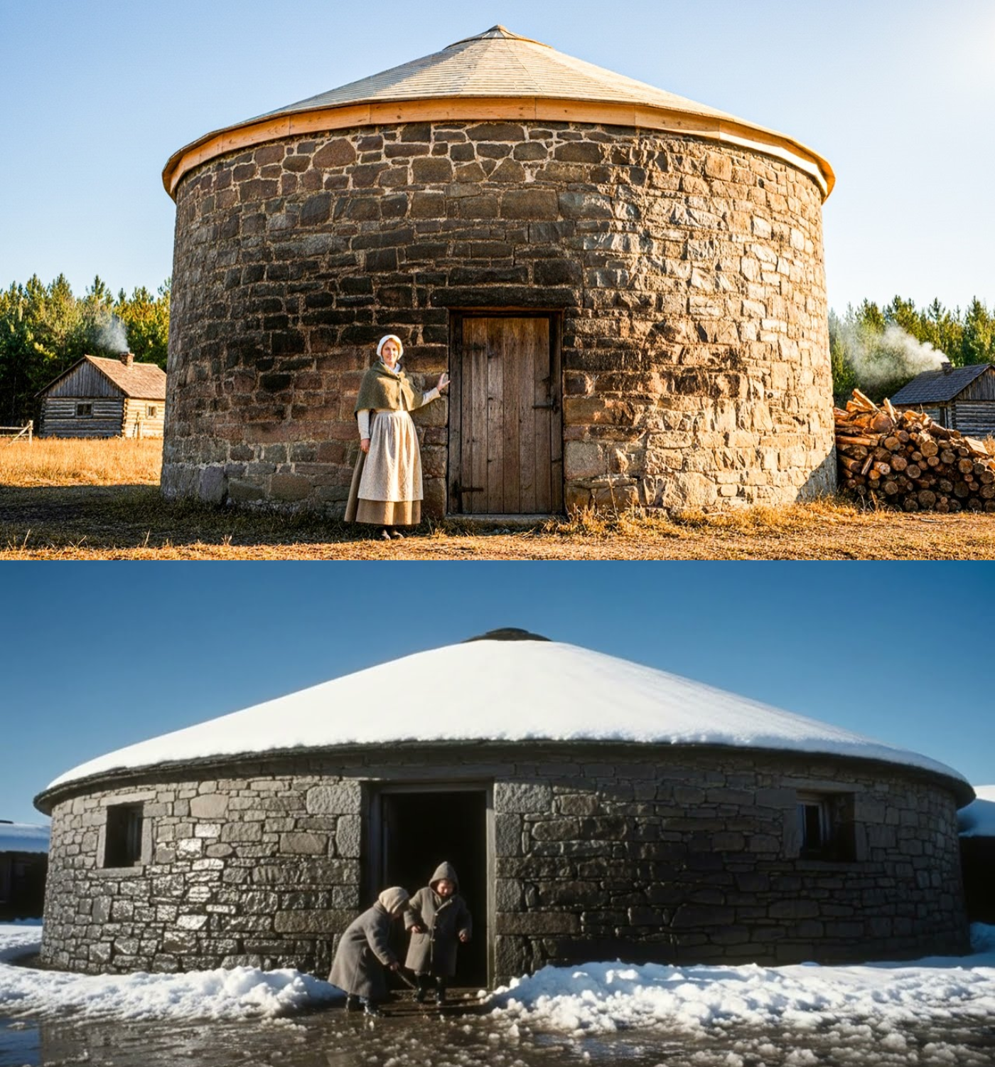 Margaret stood before the cylindrical ruins, unsure of what she had truly acquired. The neighbors scoffed, dismissing her as mad for thinking she could live in a grain bin. But as winter approached, she clung to the belief that the thick stone walls could hold warmth, just as she remembered from her childhood in Russia. She set to work, dragging charred timbers from the debris of the barn, building a roof, and cutting a chimney.