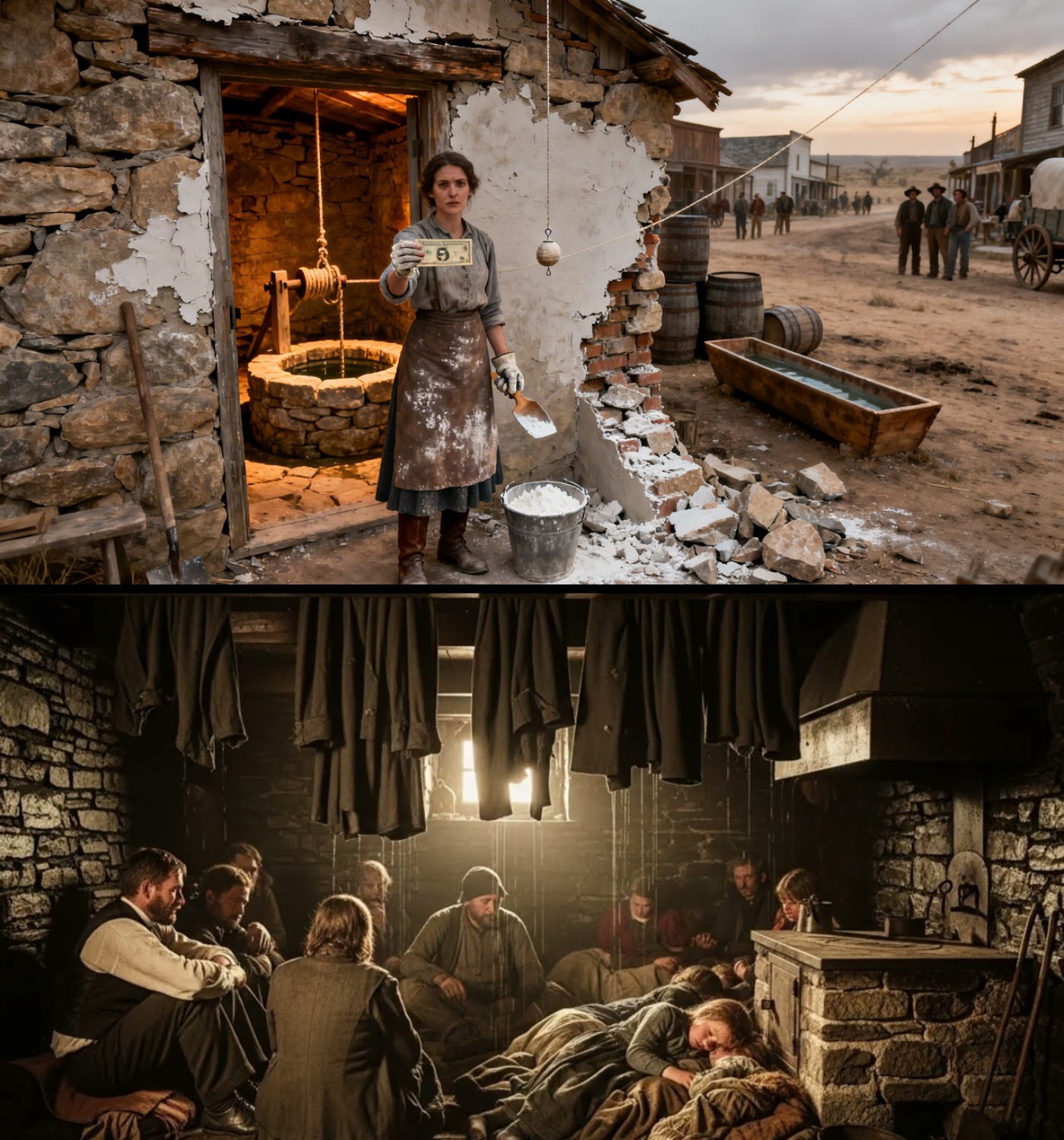 Days turned into nights as the storm continued, but Clara refused to give in. She rationed food and fuel, twisting hay into sticks to feed the fire, determined to keep her children warm. And then, amidst the chaos, a knock came at the door. It was Brower, his face a mask of desperation. “The roof collapsed,” he said, his voice strained. “I couldn’t save my wife or the cattle.”