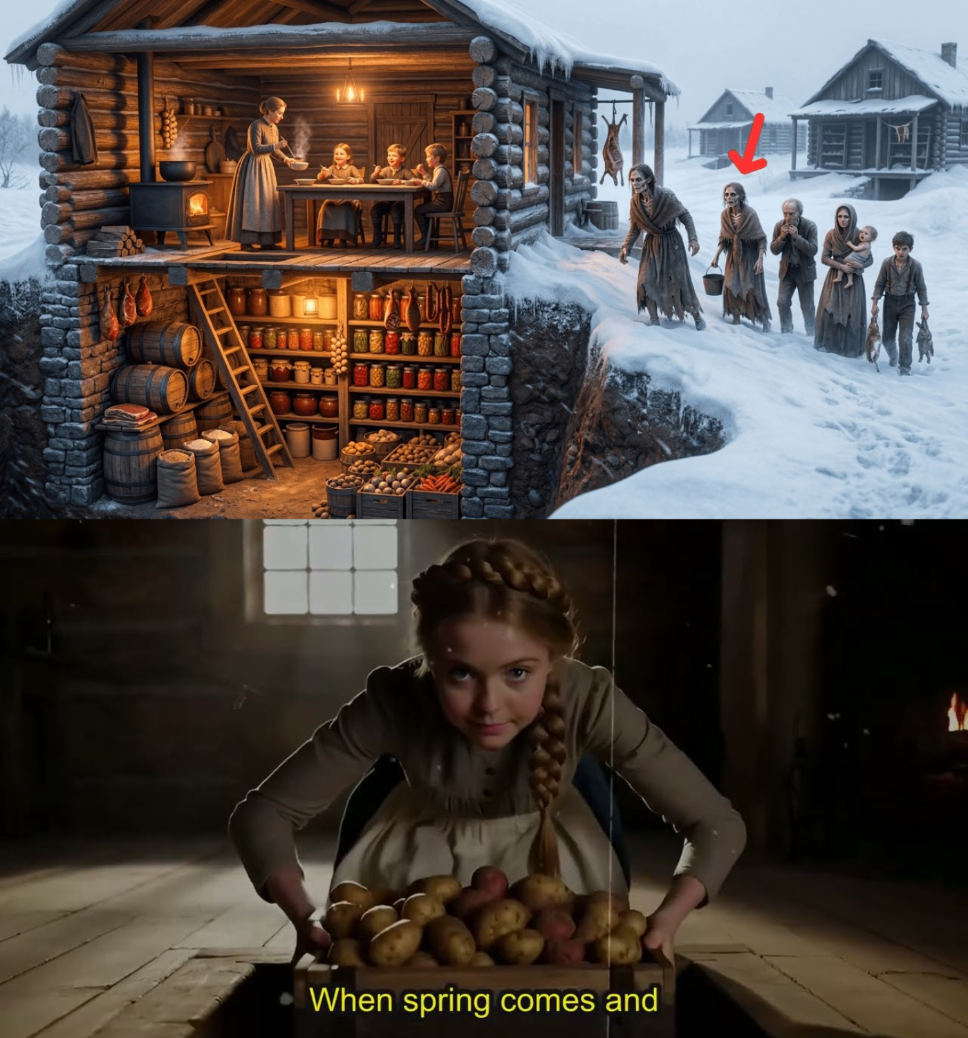 With that, Helga lowered another crate into the pit. “I’m storing 600 pounds of food under this floor: potatoes, turnips, carrots, cabbage, dried beans, dried meat, preserved fruit. Enough to last seven months without leaving this cabin. And when winter comes, I’ll be ready.”