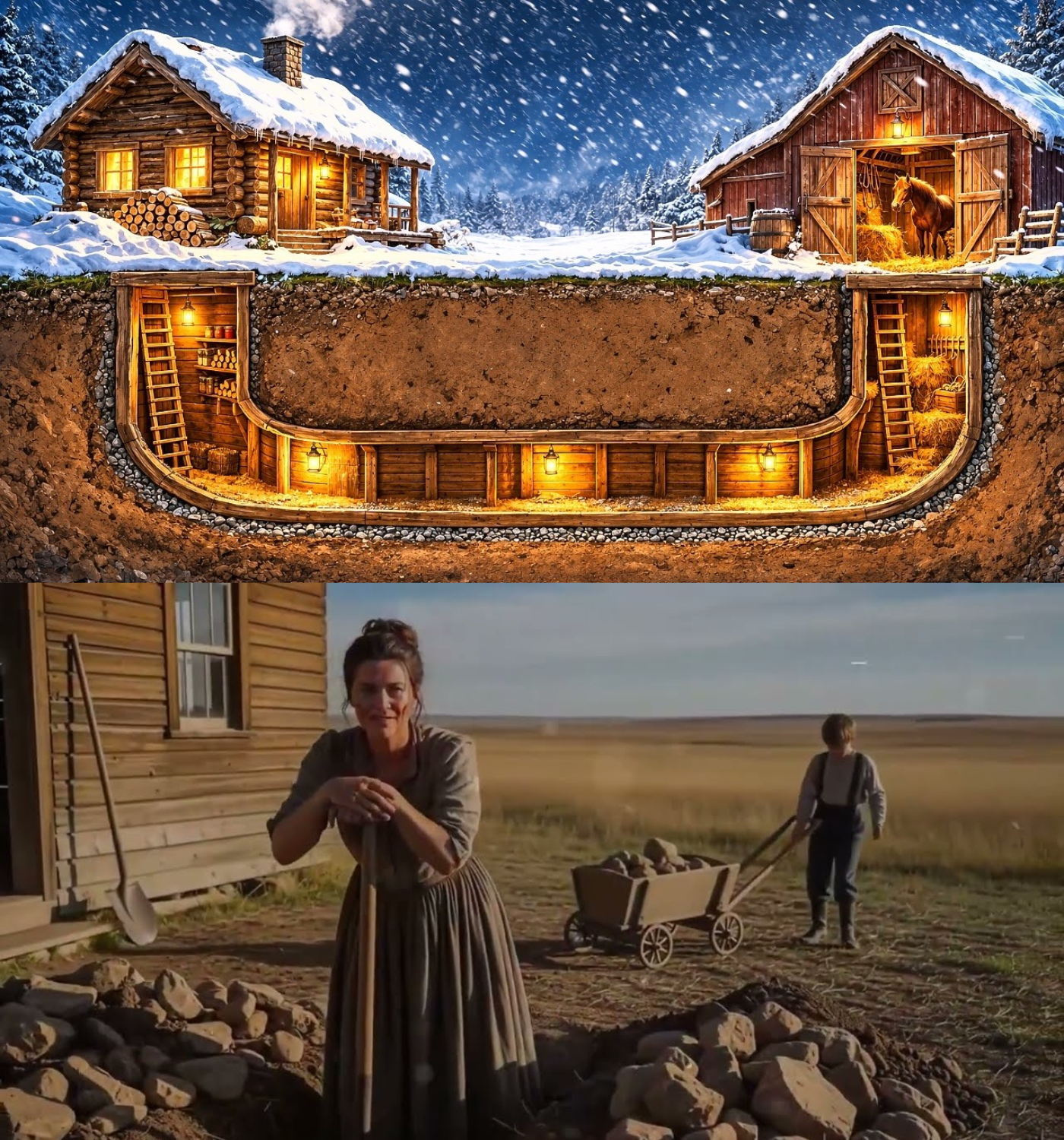 One evening, as the sun dipped below the horizon, Ana opened Lars’s wooden chest, inhaling the scent of pine and ink. His journals, filled with meticulous notes on mining and the earth’s secrets, spoke to her. But it was one particular drawing that ignited a spark of hope: a sketch of a house half-buried in the hillside, designed to harness the earth’s warmth. Lars believed that the ground could store heat and release it during the harshest winters. Inspired, Ana envisioned a radical project—a tunnel connecting her cabin to the barn, a lifeline that would transform her homestead.