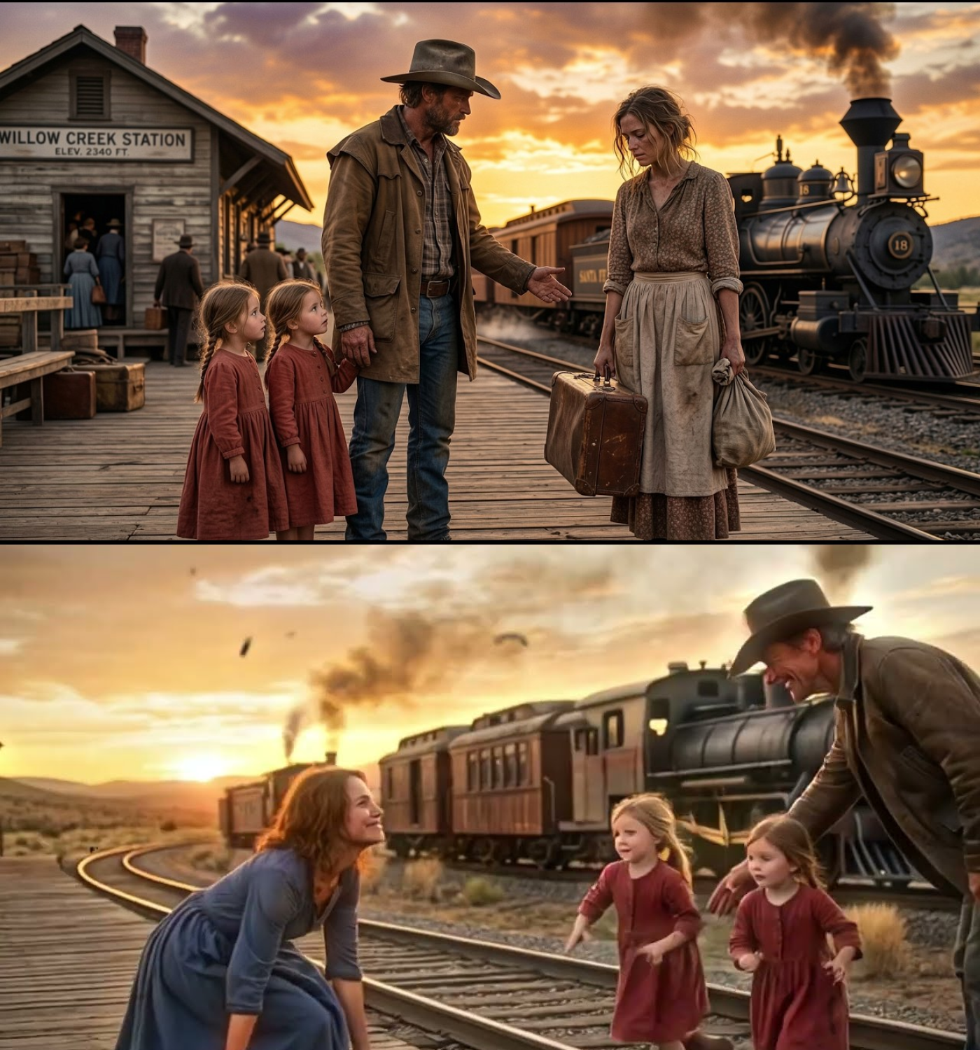 Aara stood alone at the empty train station, her heart heavy with disappointment. Just hours ago, she had arrived with hope, believing that a loving family awaited her in the western town of Red Hollow. The letter she had clutched tightly promised her a home, work, and a sense of belonging that she had longed for all her life. But now, the door had closed in her face, leaving her stranded in a world that felt colder than ever.