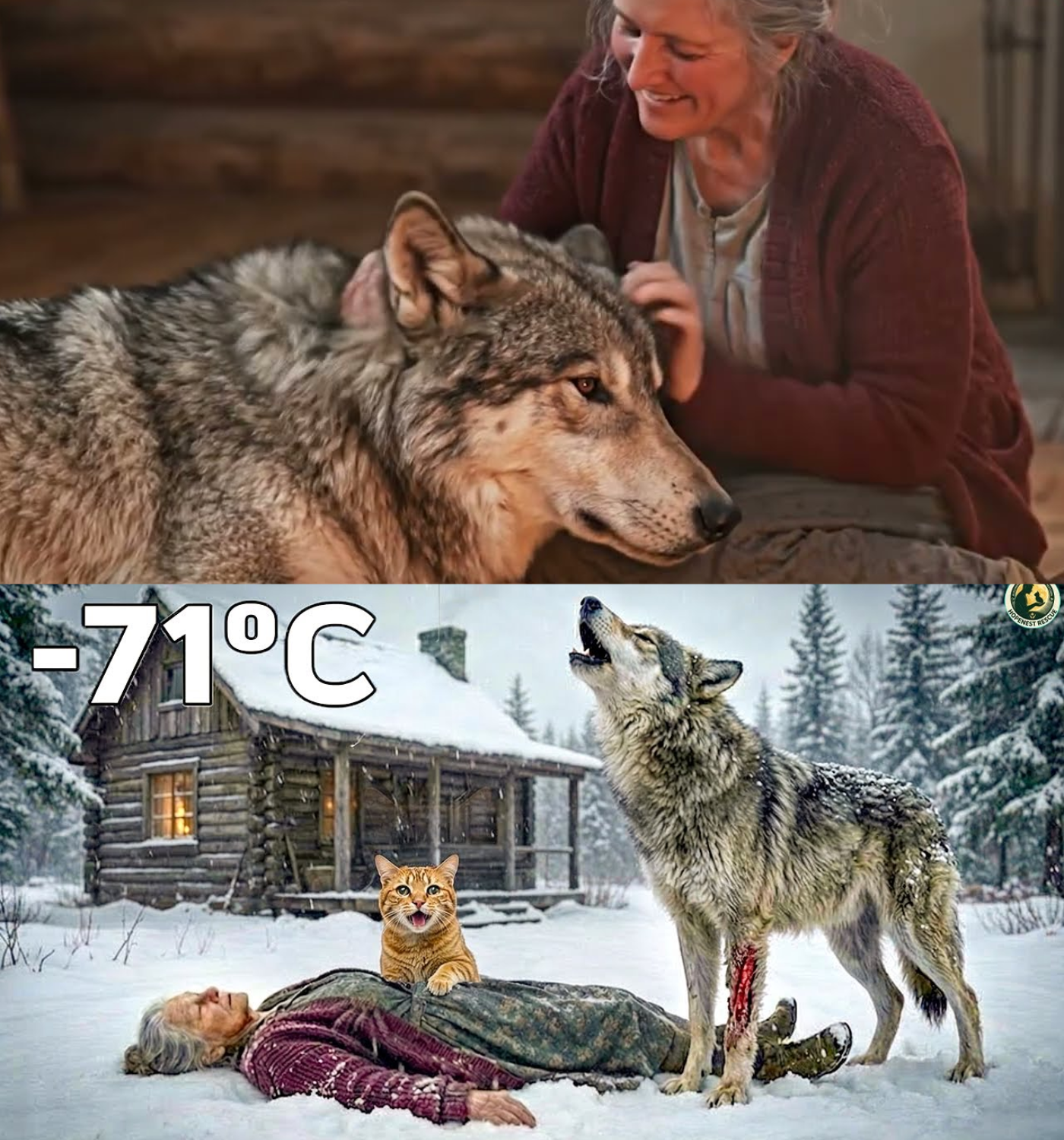 As the days turned into weeks, Titan became Martha’s protector and companion. He would follow her around the cabin, keeping watch as she went about her daily routines. In return, Martha provided him with food and warmth, and together they formed an unbreakable friendship. Titan was no longer just a wolf; he was her gentle beast, a part of her family.