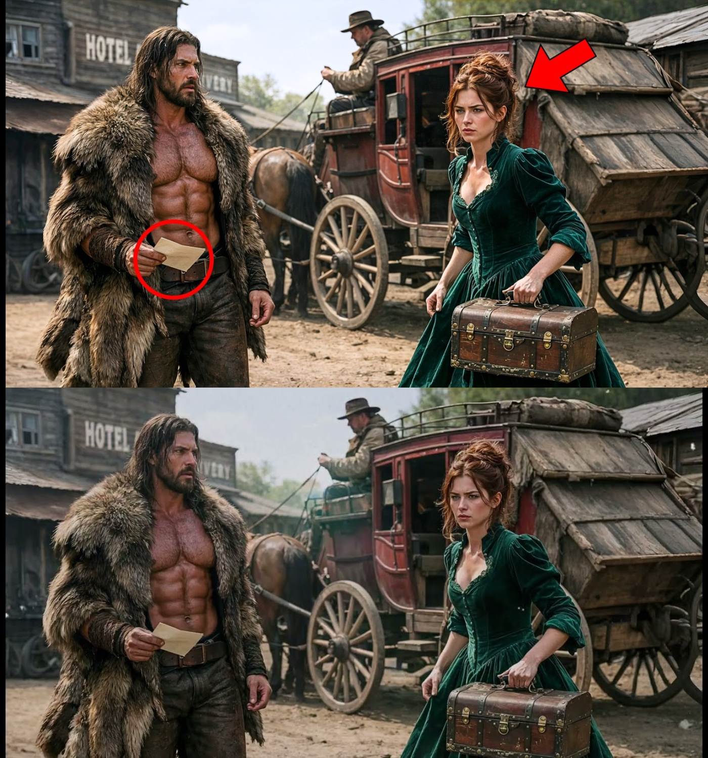 Yet, as he looked at her, he sensed the desperation beneath her polished exterior. “Get your trunk in the wagon,” he grunted, knowing he couldn’t leave her in a rough town like Bear Creek. They embarked on a long, silent journey to his mountain cabin, the air growing colder and the path more treacherous.