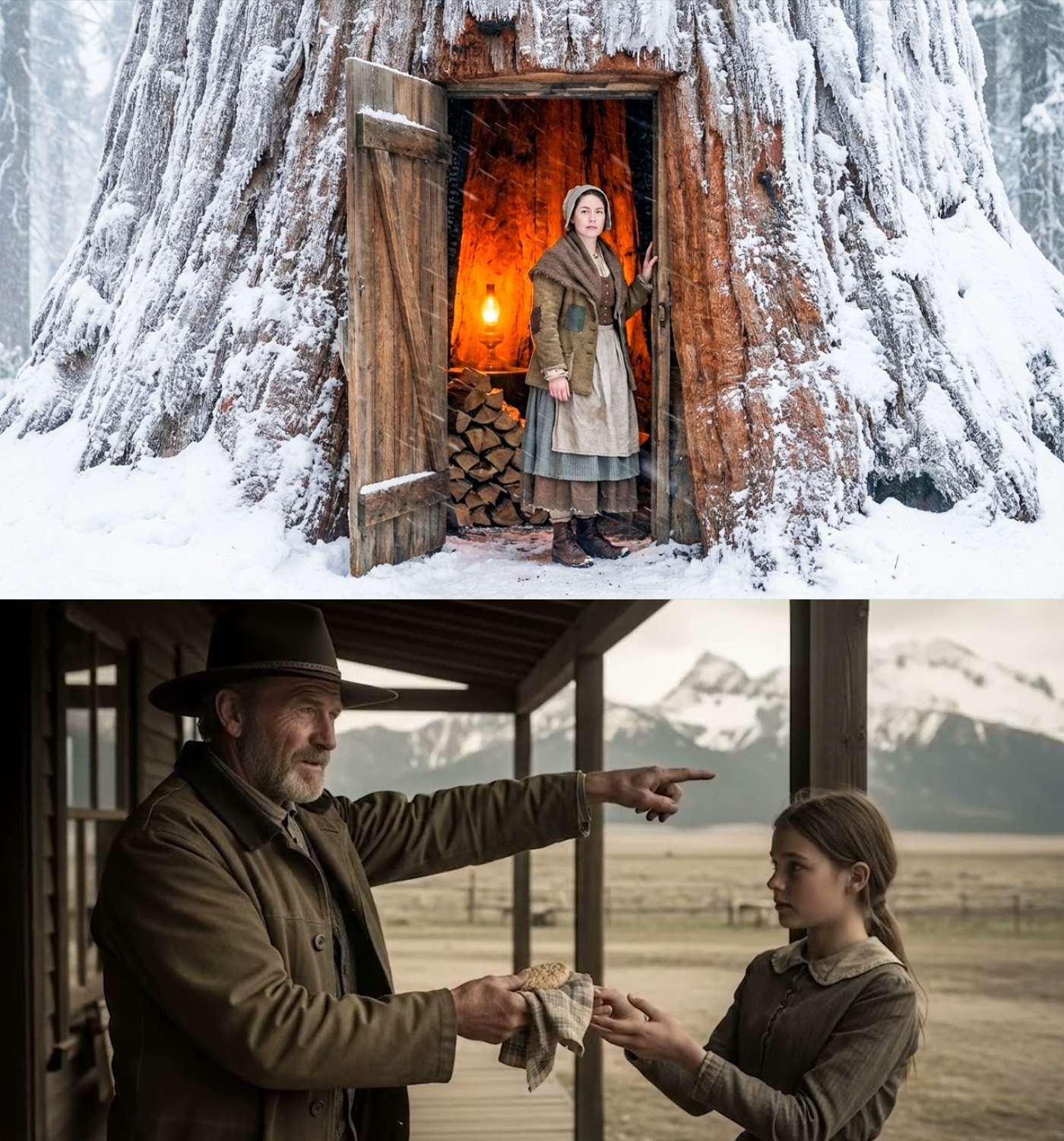 Clara did not heed his warnings. Instead, she walked east into the mountains, determined to find shelter. Two days later, she encountered the giant sequoias, towering trees that had stood for thousands of years. Among them, she discovered a dead sequoia, hollowed out by fire but still standing strong. The interior was dark and charred, but it was wide enough to serve as a room, and the thick bark could provide insulation against the cold.