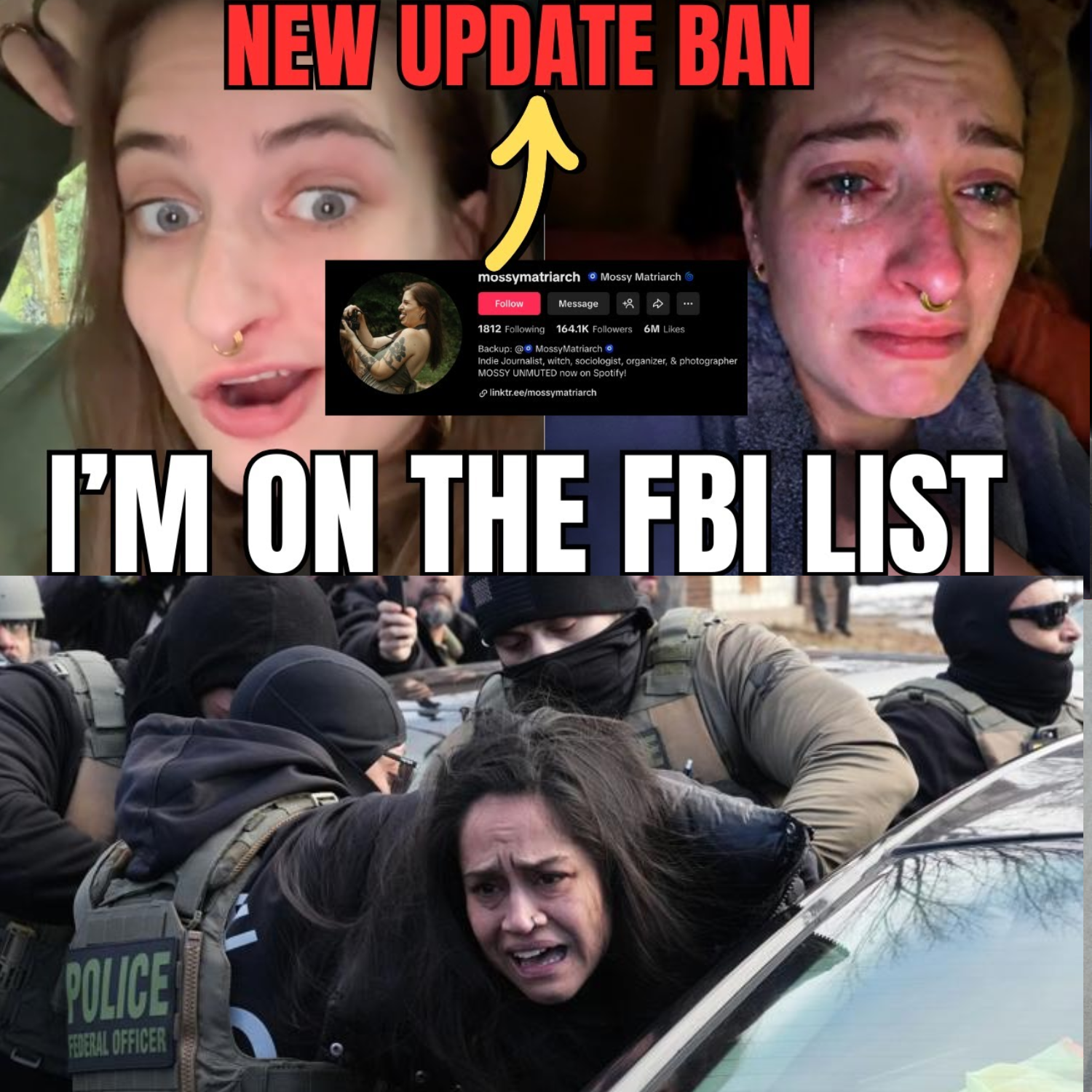 In a now-viral video circulating across social media, a self-described disabled single mother and photographer known online as “Mossi Matriarch” claims agents identifying themselves as members of the Federal Bureau of Investigation showed up at her home after her TikTok posts sparked public concern. Within days, her primary account on TikTok was banned. Roughly $400 in platform earnings? Uncertain. Her digital livelihood? In limbo.