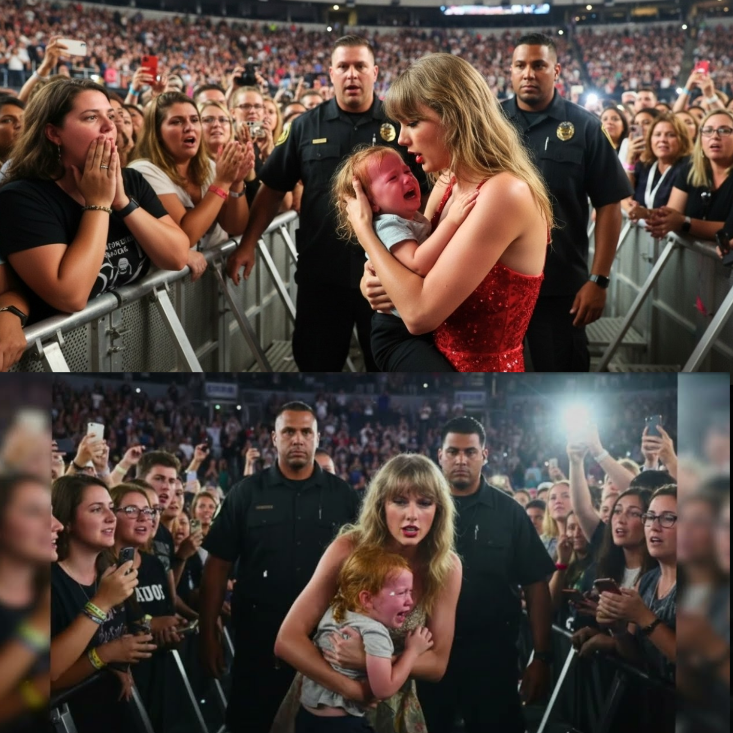 As security cleared a path, Taylor spoke into the microphone while descending into the audience. “Everyone, I need your help. His name is—” She paused. “Sweetheart, what’s your name?”