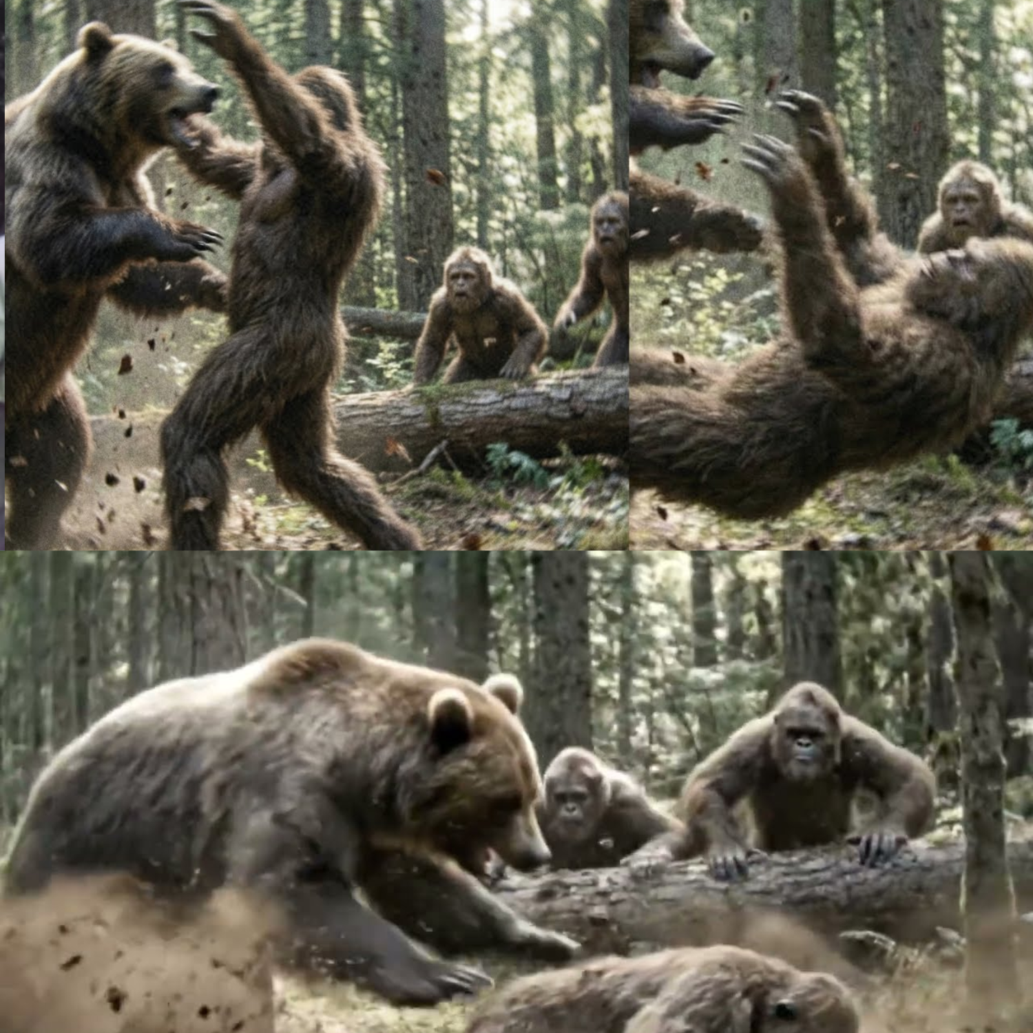 The mother turned and put herself between the bear and the young ones. She was massive—at least seven feet tall, shoulders wider than any man I’d ever known, arms hanging low and powerful. The bear hit her hard. I heard the impact from hundreds of yards away, a sound like a car door slammed shut.